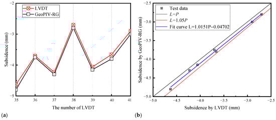 Comparison of subsidence measured by LVDT and GeoPIV-RG: (a) Comparison chart; (b) Error analysis.