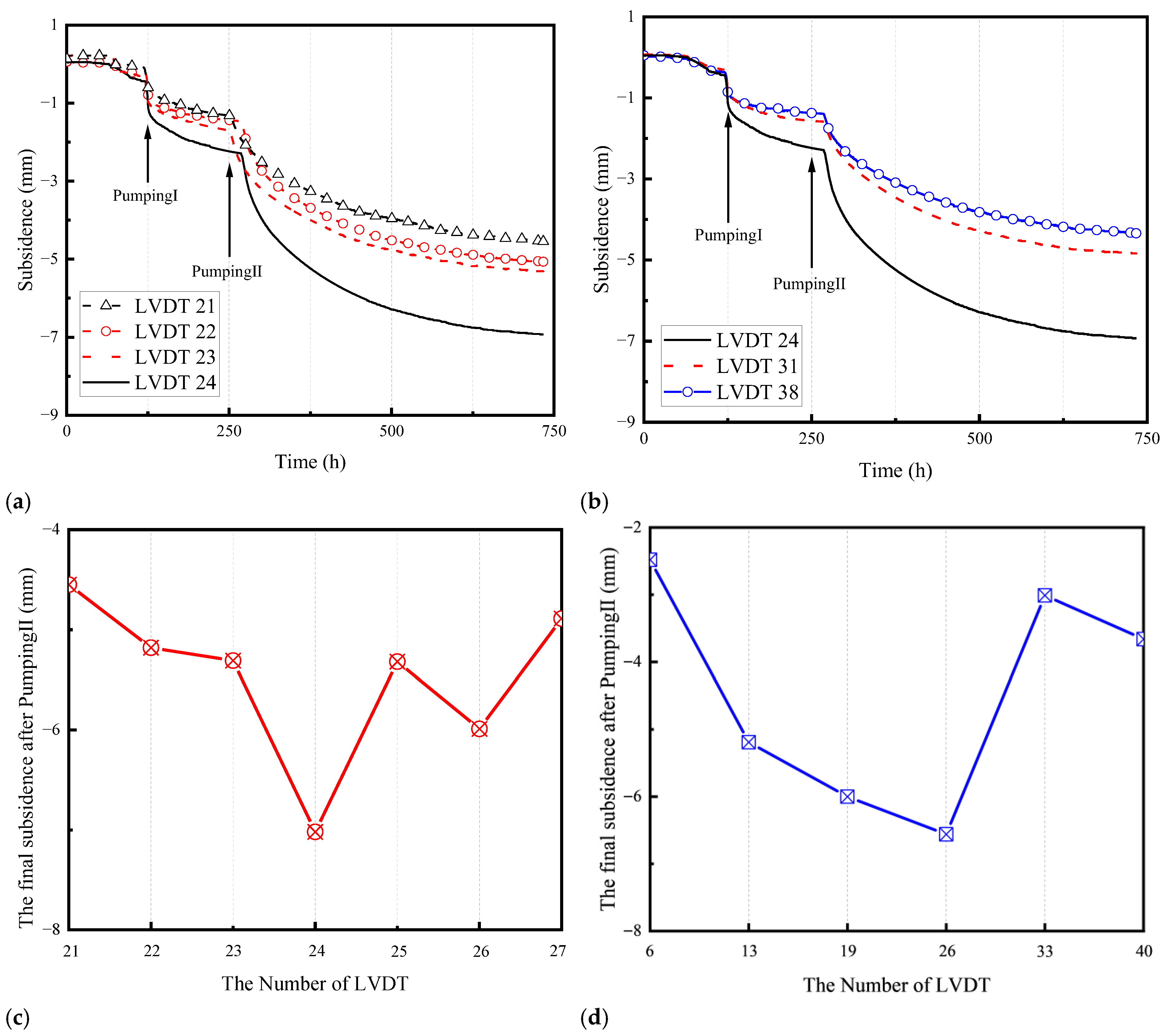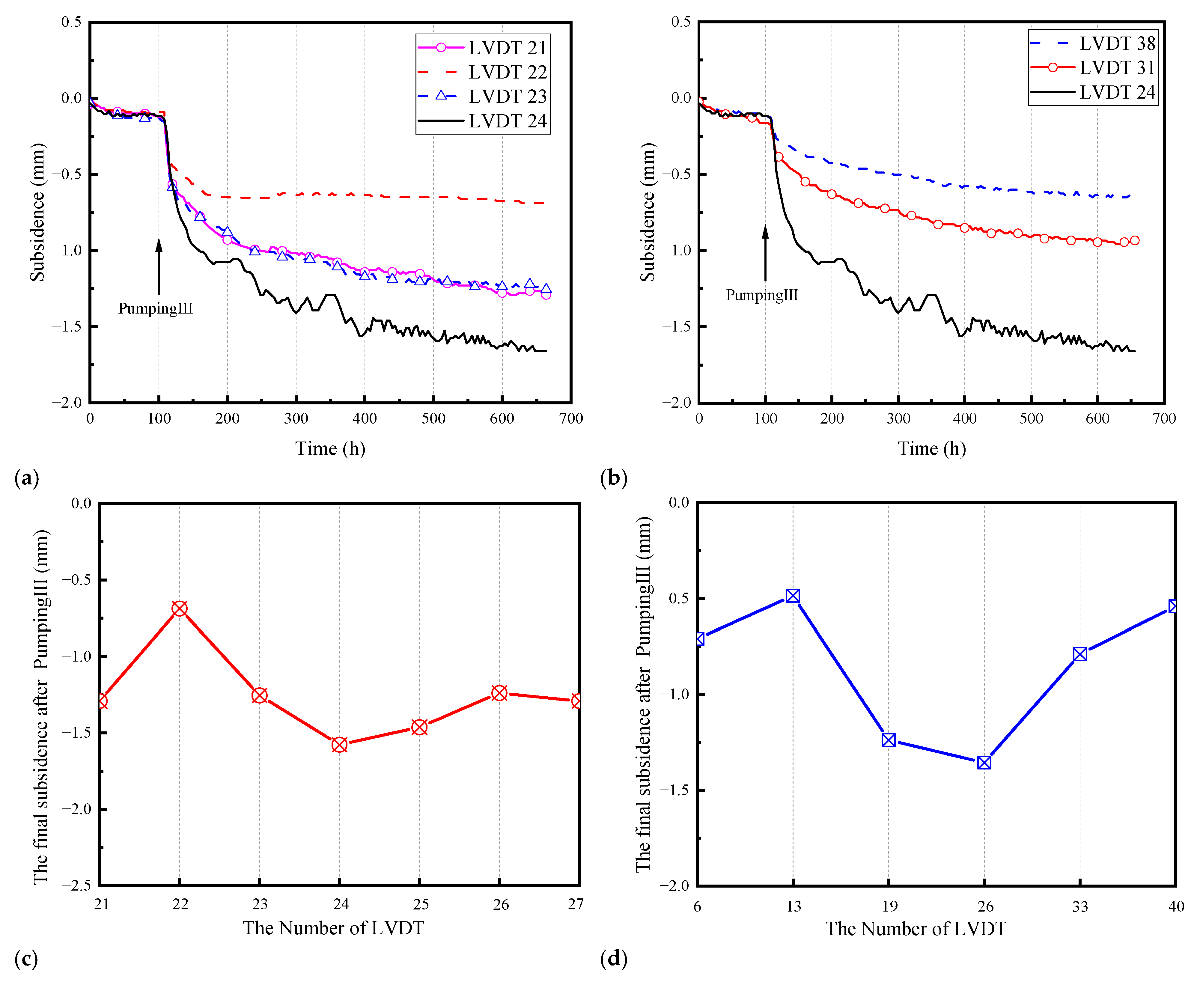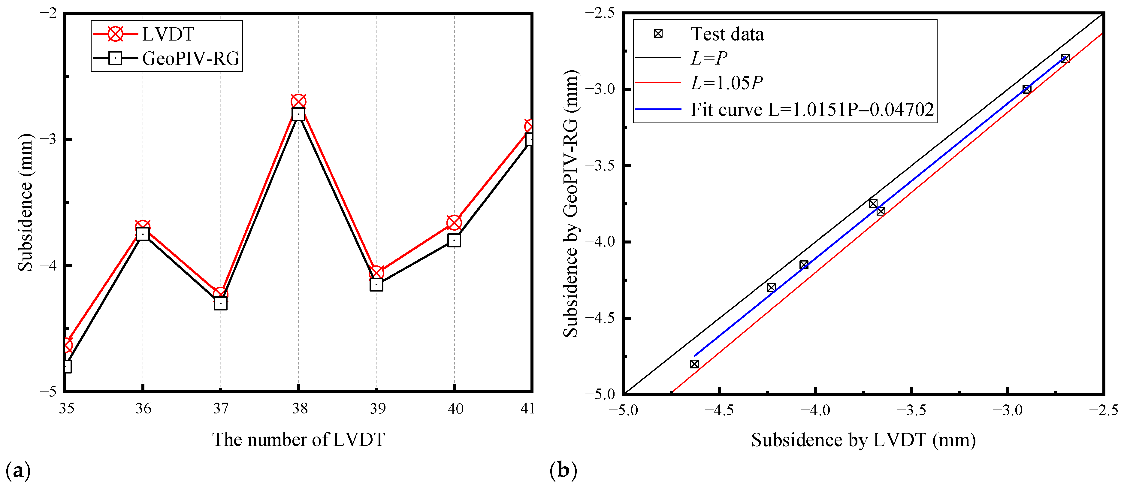 3.2. Subsidence Fixed by PIV and LVDT Results