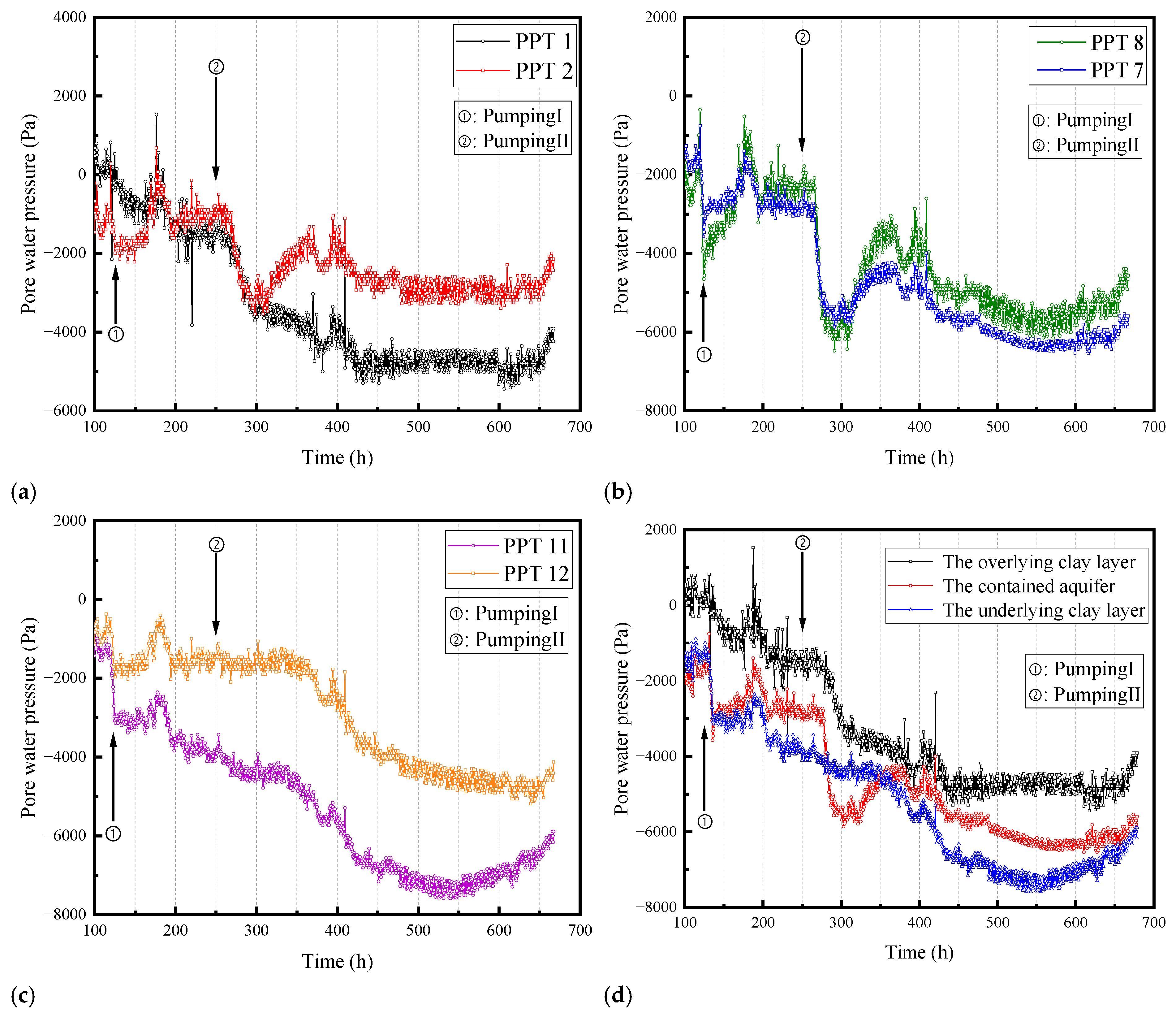 3.3. Pore Water Pressure Variation Due to Triple Pumping