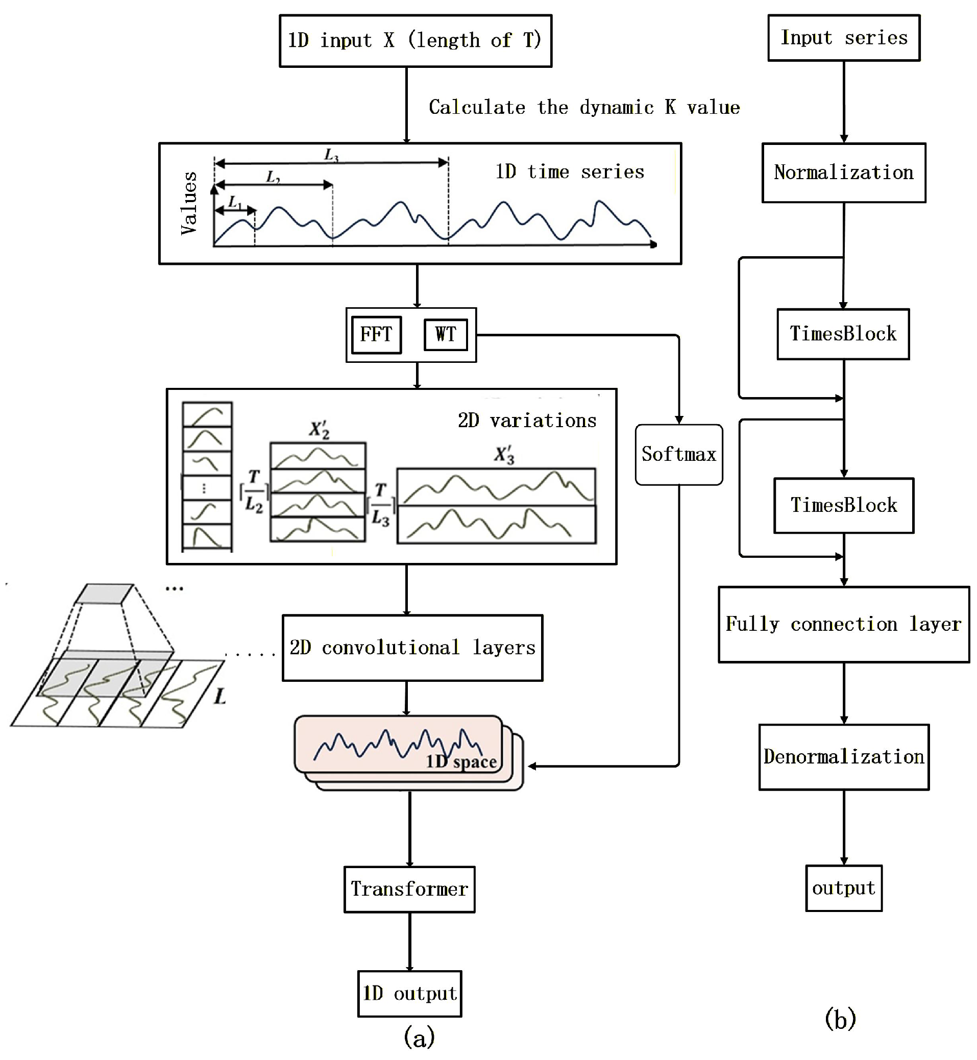 44]. The extracted 2D features are then transformed back into 1D space to generate the final time-series predictions.