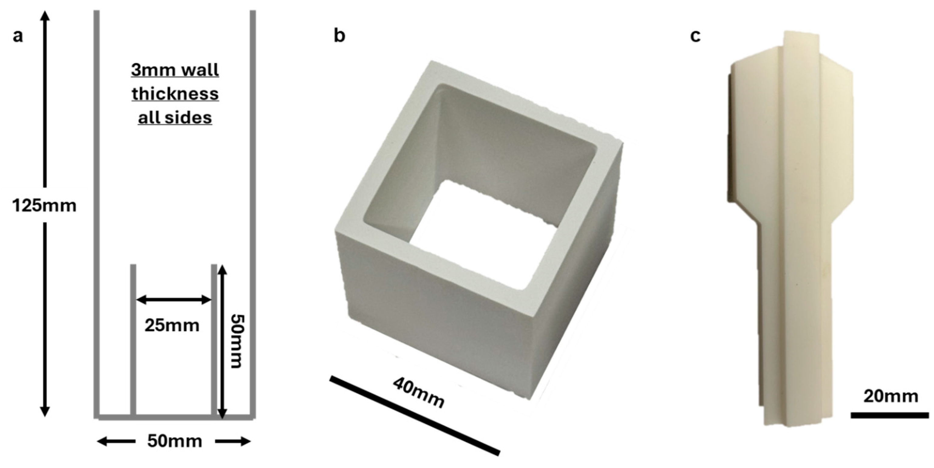 - Staudacher, M.; Lube, T.; Glettler, J.; Scheithauer, U.; Schwentenwein, M. A novel test specimen for strength testing of ceramics for additive manufacturing. Open Ceram. 2023, 15, 100410. [Google Scholar] [CrossRef]