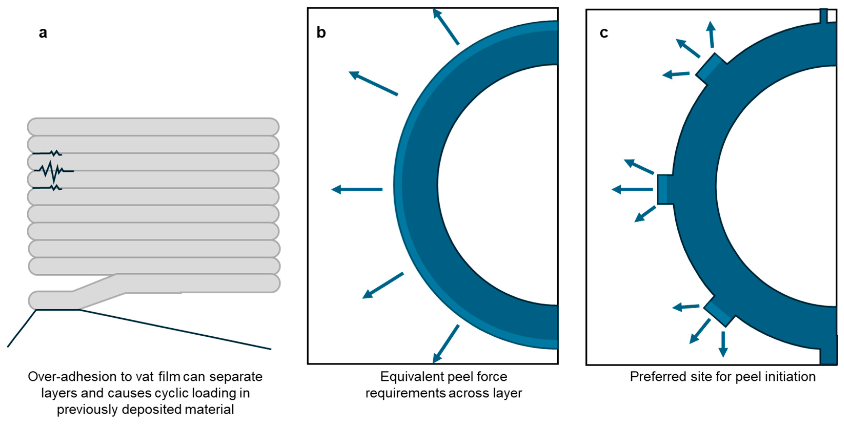 - Liang, H.; Hu, B.; Li, R.; Sun, J.; Wang, Y.; Zhou, P.; Cai, P.; Bai, J. Enhancing mechanical integrity of vat photopolymerization 3D printed hydroxyapatite scaffolds through overcoming peeling defects. J. Eur. Ceram. Soc. 2024, 44, 116642. [Google Scholar] [CrossRef]