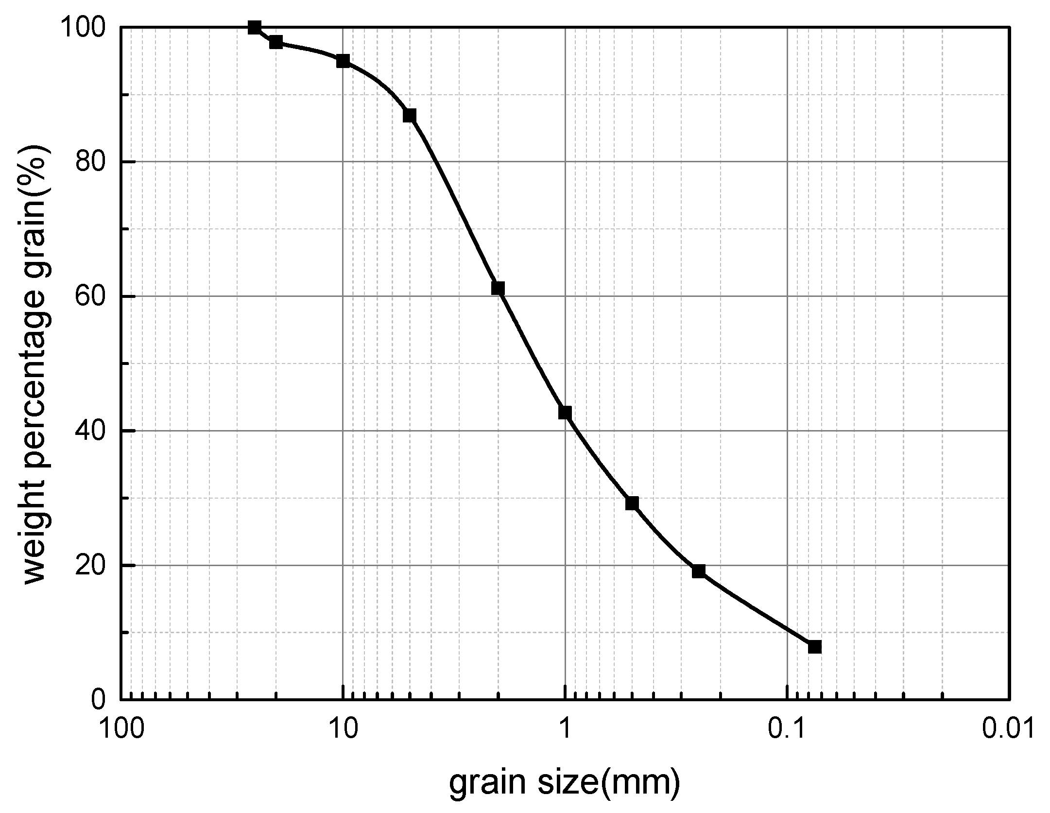 The soil used in this study, consisted primarily of well-graded medium to coarse sand and fine to coarse gravel with a fines content below 5%. The particle-size distribution curve is shown in