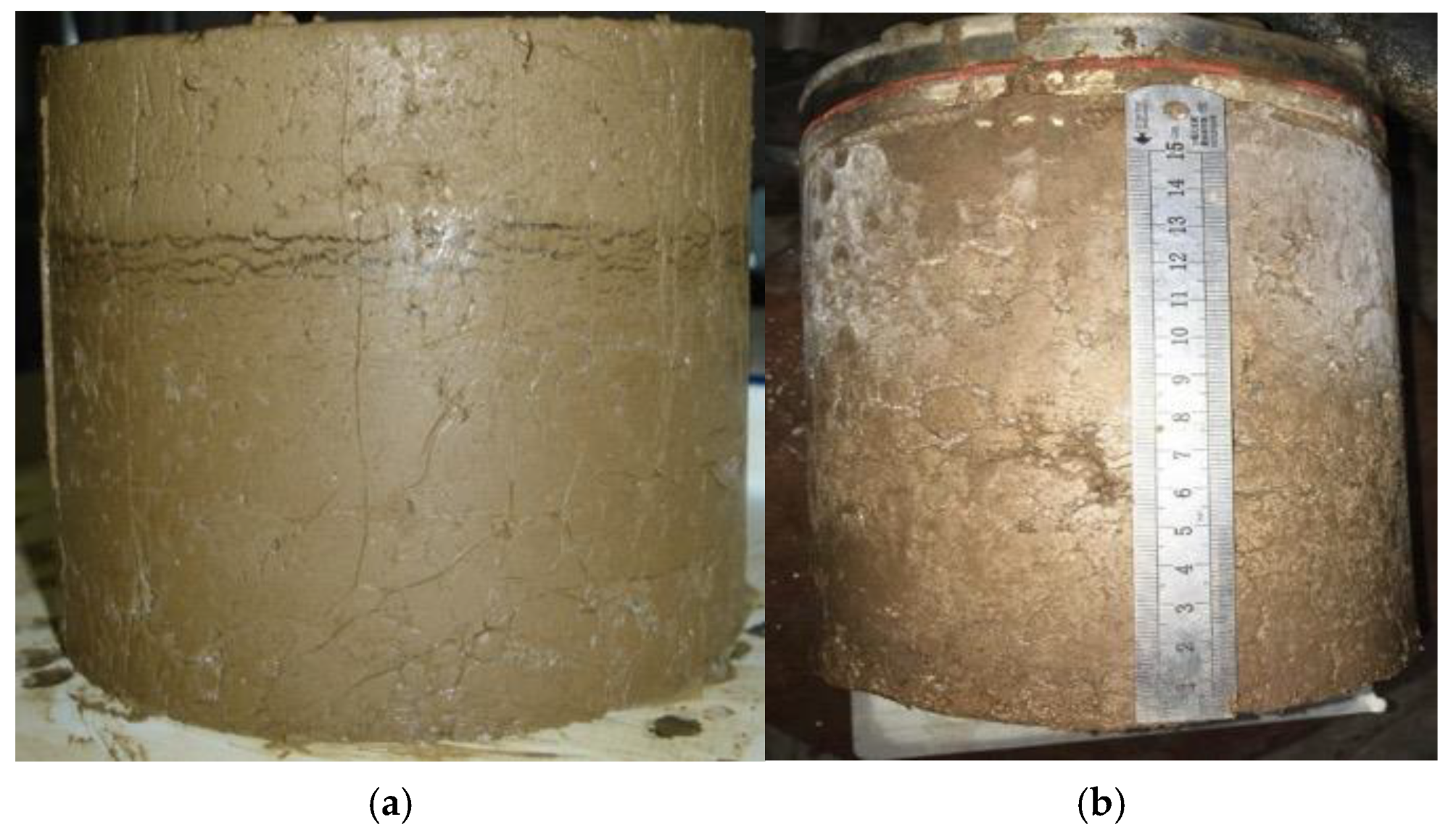 Sample of fine and coarse-grained soil after freezing. (a) Fine-grained soil. (b) oarse-grained soil.