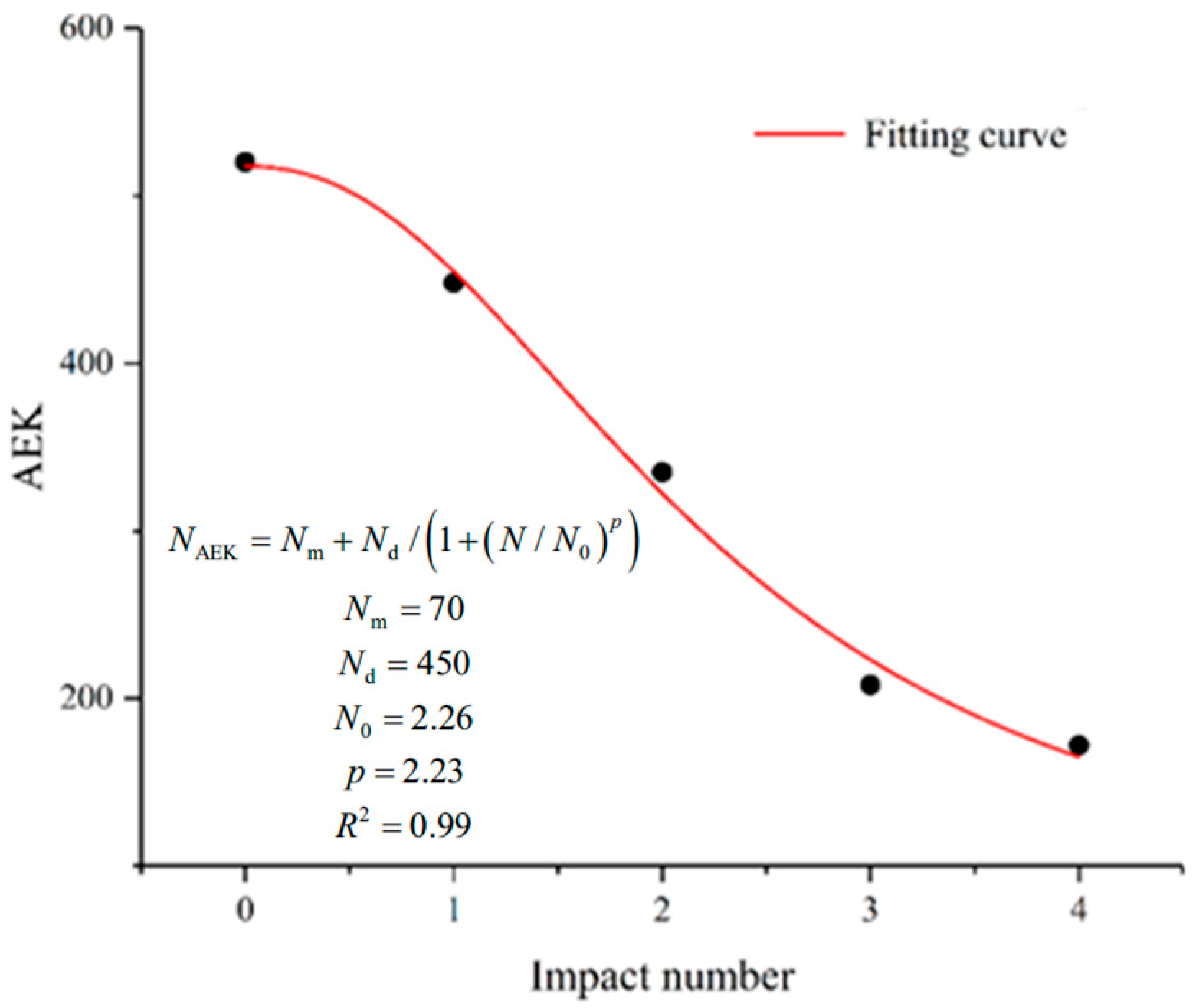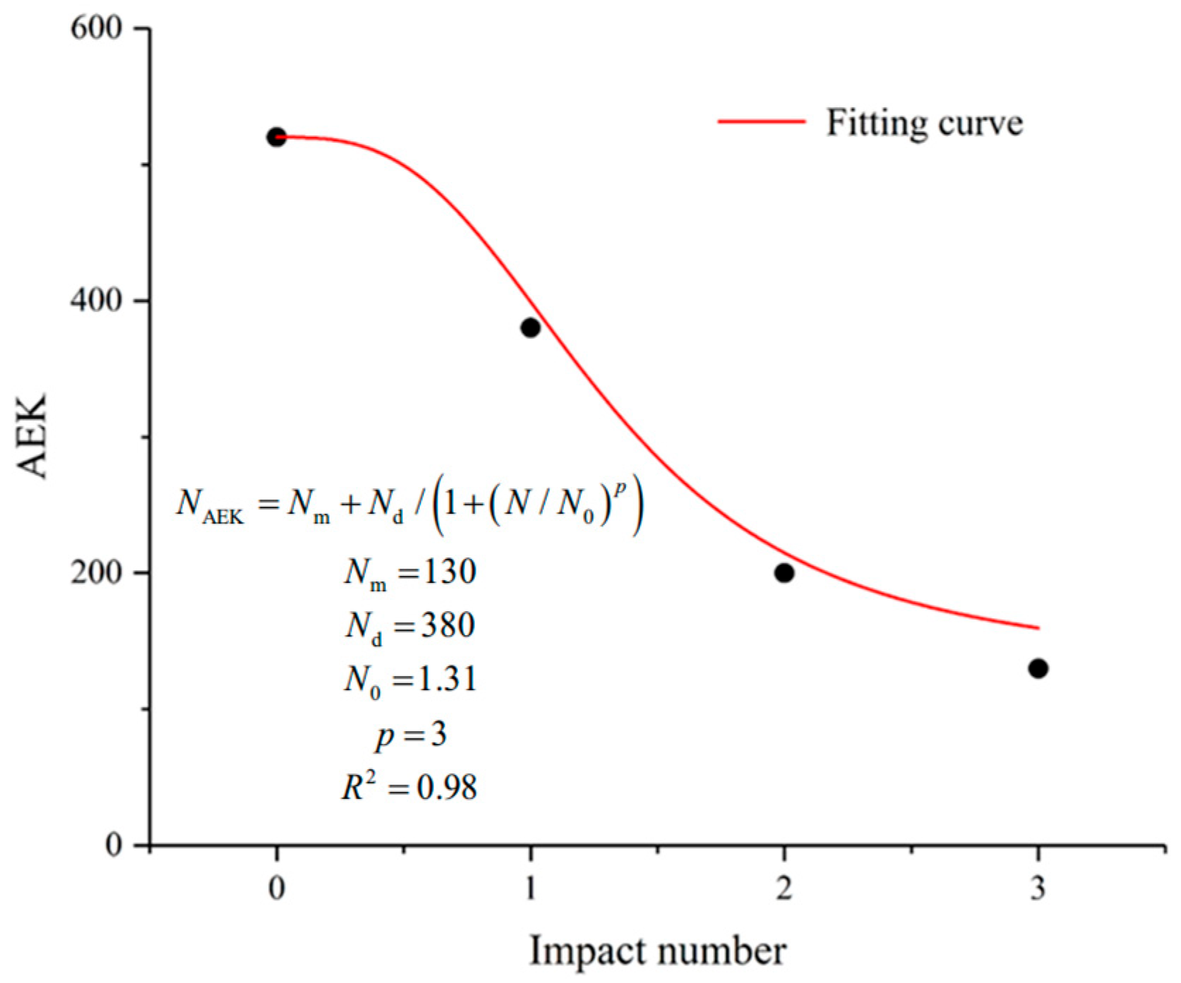 3.2.1. Repeated Impact Number That Causes the Specimen to Break Completely