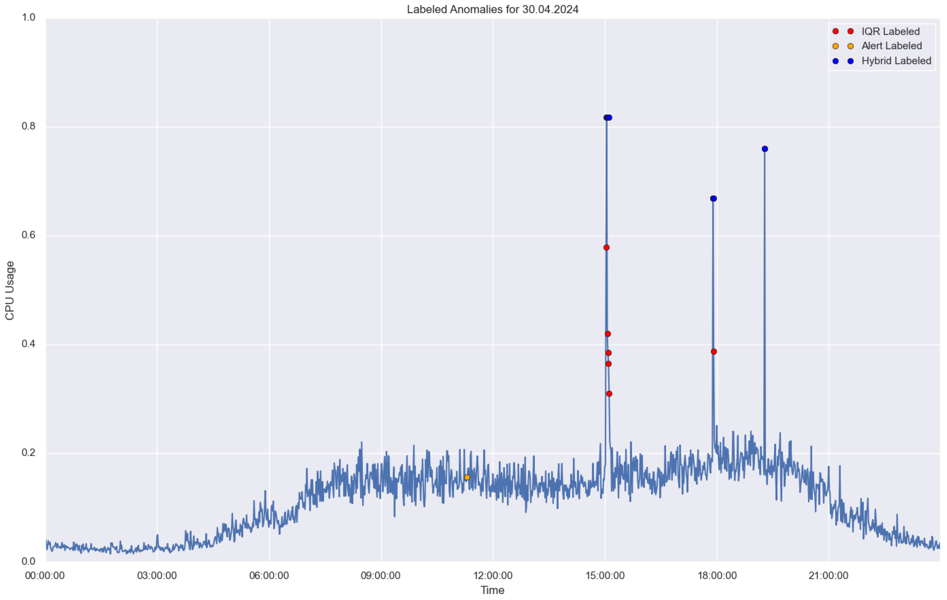 The ground truth data has been generated using three different methods. Firstly, alarm data provided by HangiKredi’s DevOps team was used. These alarms were derived from errors reported by pods, the number of errors occurring within a specified time frame, and resource consumption. These alarms represent the best-case scenario. Performance results based on these alarms will indicate the strength of the Night’s Watch algorithm in comparison to the current situation. This case is referred to as the application ground truth.