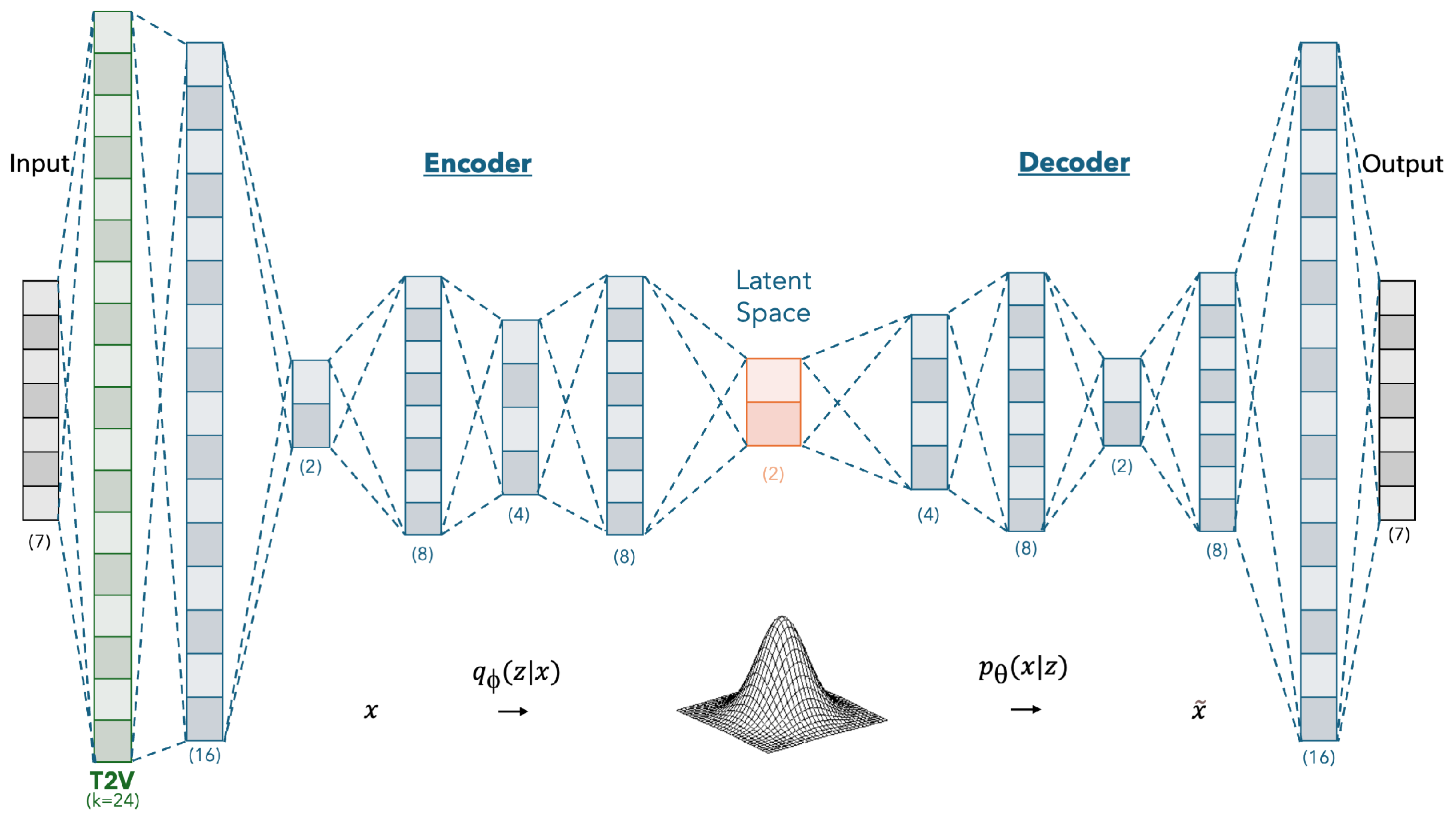 28]. The encoder maps the input to a lower-dimensional latent space. The latent space represents the mean and variance values. The model performs encoding by learning the probability distribution based on these mean and variance values.