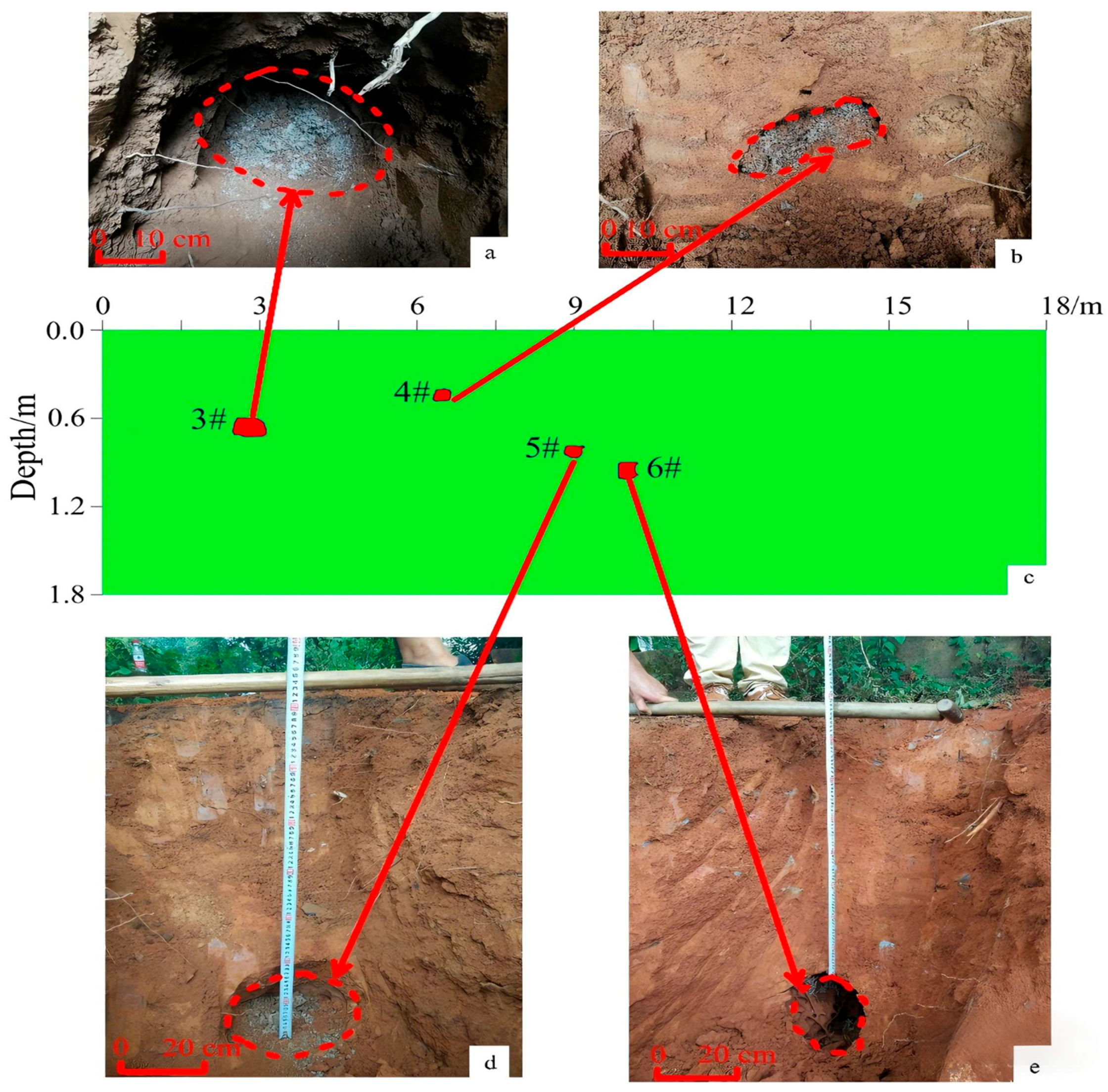 | Termite Nest Number | Excavation Results (Horizontal Center/m, Top Burial Depth/m) | Inferred Location | Horizontal Center Error (%) | Top Burial Depth Error | |||