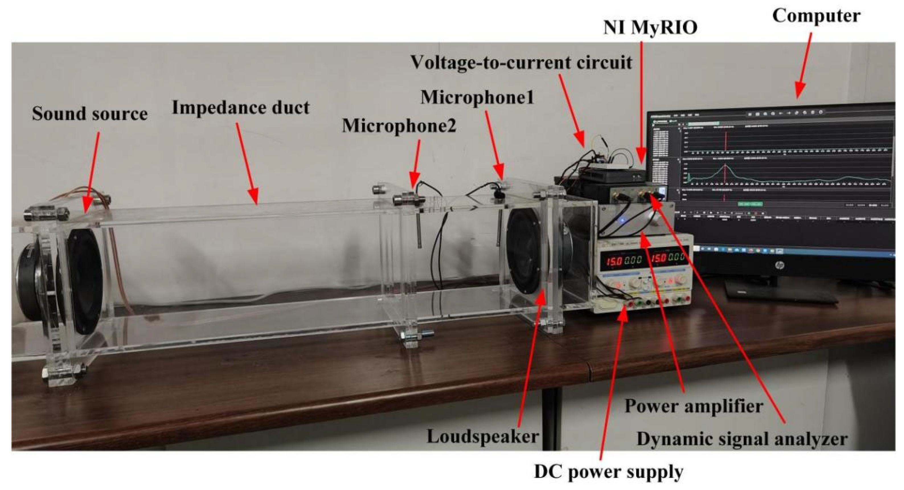 - Xu, Y.B.; Liu, J.C.; Cong, C.N. Study on adjustable dual-frequency sound absorber based on hybrid digital-analog shunt loudspeakers. In Proceedings of the 3nd International Conference on Acoustics, Fluid Mechanics and Engineering, Hangzhou, China, 8–10 November 2024. [Google Scholar]