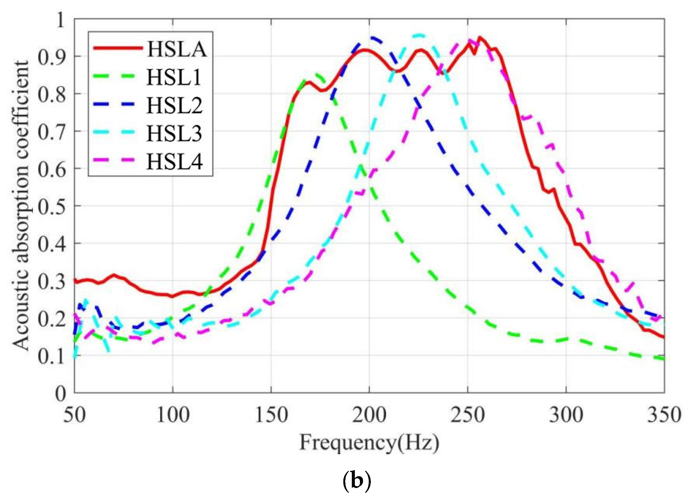 4.2. Experimental Results of the HSLA Low-Frequency Sound Absorber