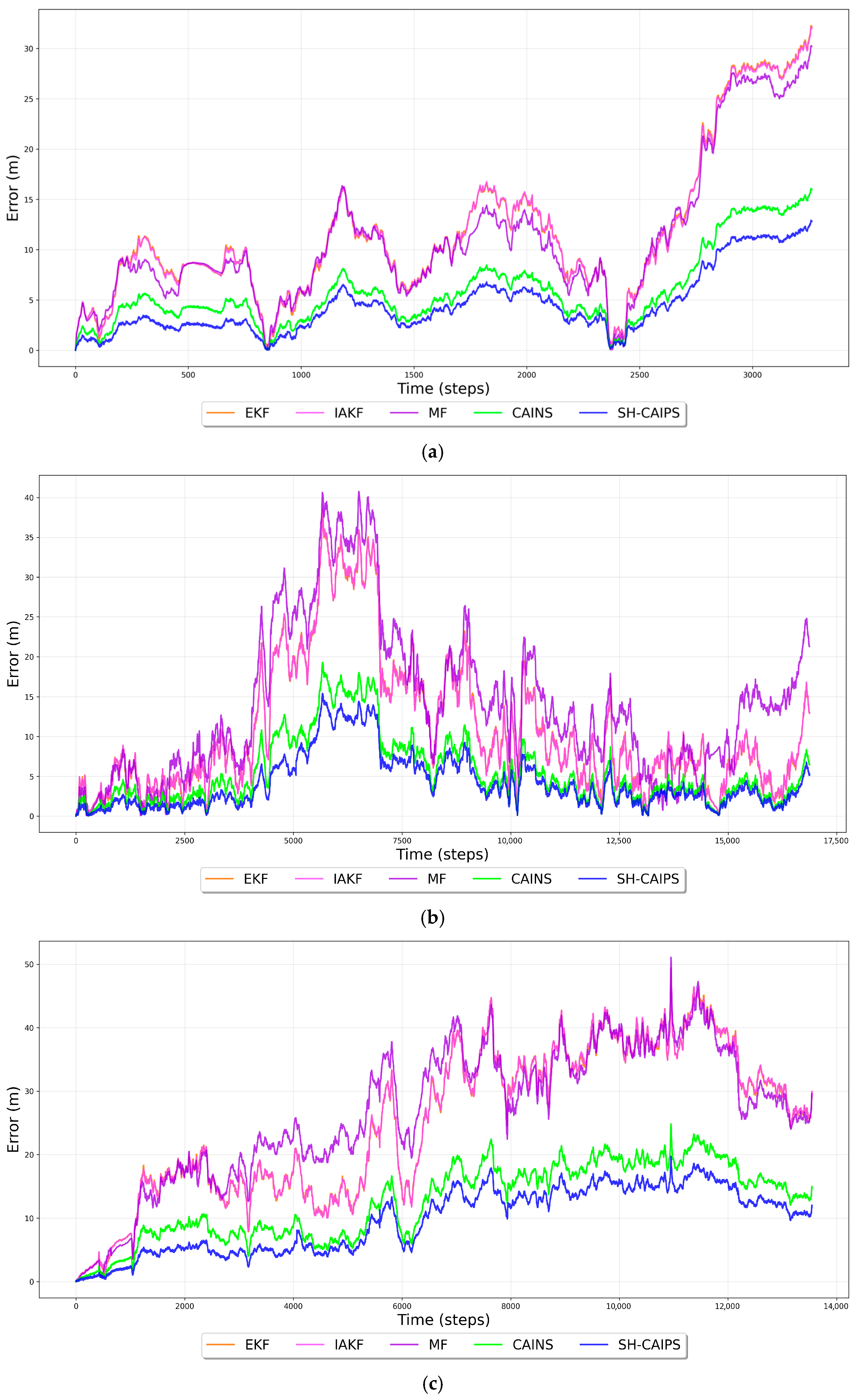 | Method | RMSE (m) | Max Error (m) | Standard Deviation | Average Drift Rate (m/min) | Inference Time (ms) |