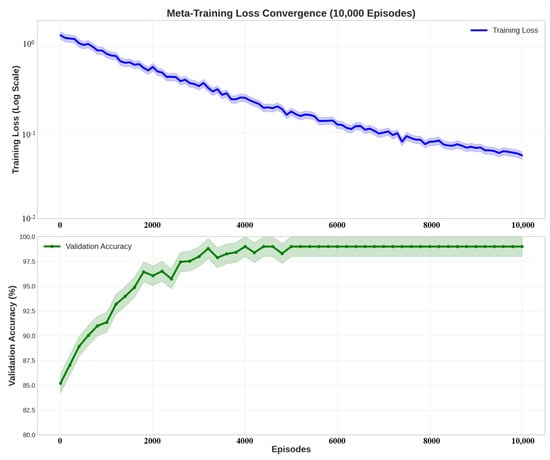 The dynamics of meta-training as shown in Figure of learning curves bring forth significant understanding of the learning process. This early quick reduction in losses (episodes 0 2000) is associated with the model to learn the simple discriminatory attributes that are common to the agricultural tasks. The next gradual refinement stage (episodes 2000–8000) is meta-optimization of the very adaptation mechanism to be able to learn how to effectively use the limited examples to learn the task-specific knowledge.
