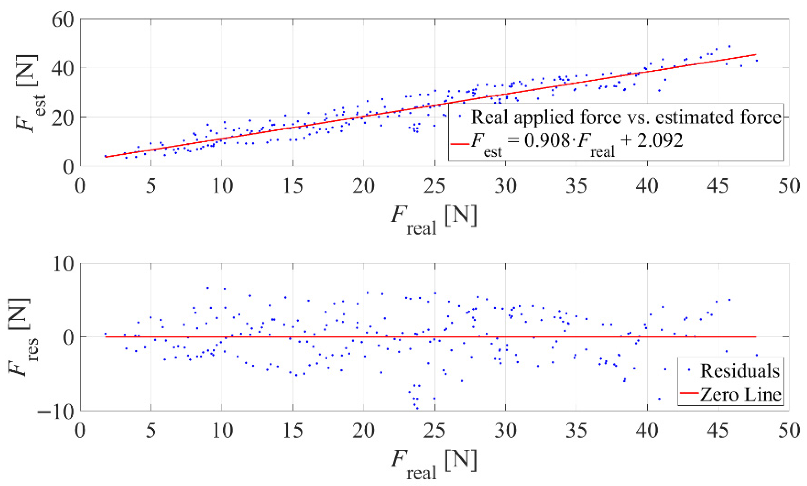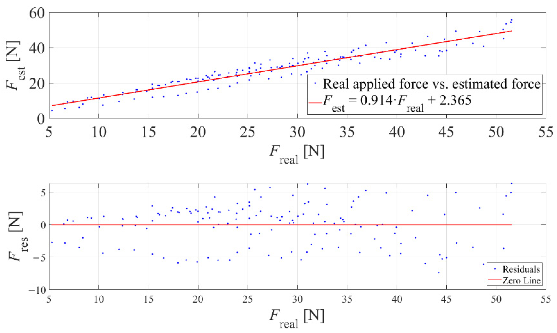 Fest). After this data set was modeled, an inherent measurement error of approximately ±5N was observed across the full measurement range.