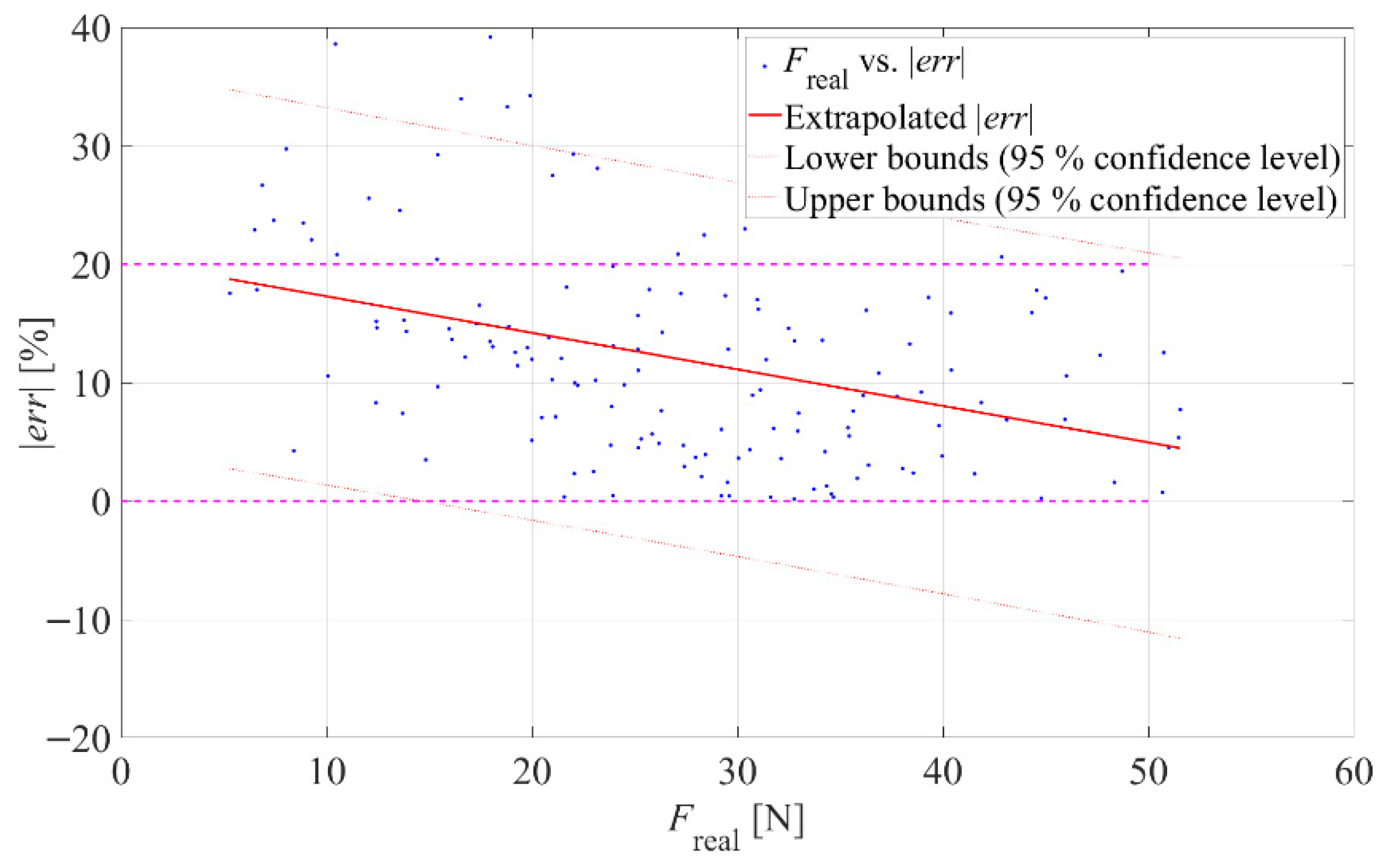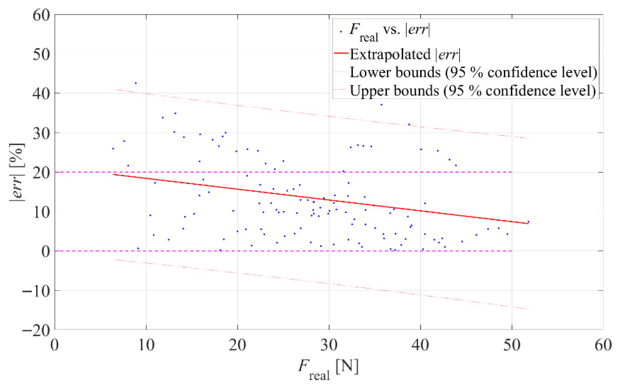 Figure 12). This precision at higher forces is highly desirable in industrial sectors like the automotive and machine industries, where developed forces are typically higher than this 12 N threshold. Conversely, the increased error below 12 N means the glove is less accurate for fine manipulation tasks.