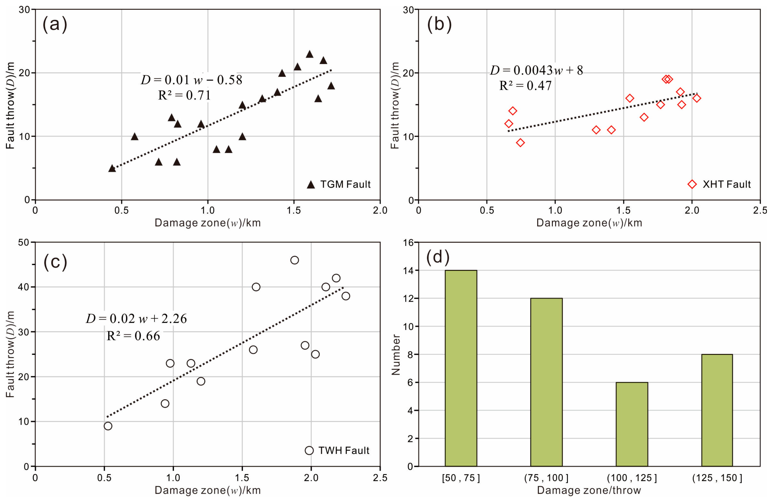 4.4.1. Relationship Between the Fault Damage Zone and Vertical Displacement