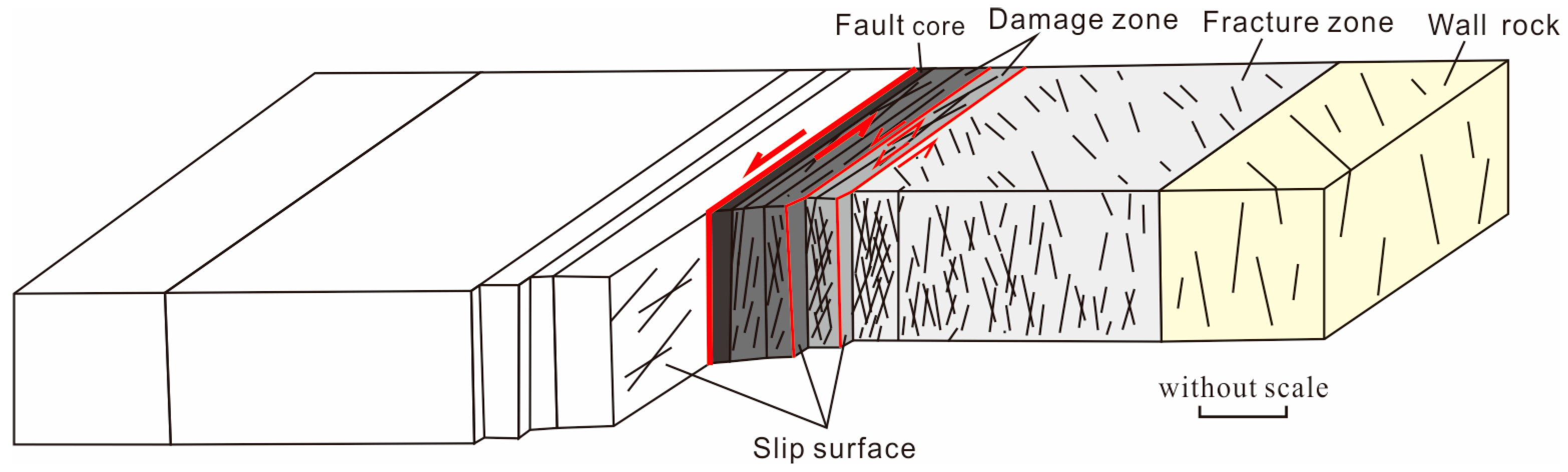 - Choi, J.H.; Edwards, P.; Ko, K.; Kim, Y.S. Definition and classification of fault damage zones: A review and a new methodological approach. Earth-Sci. Rev. 2016, 152, 70–87. [Google Scholar] [CrossRef]