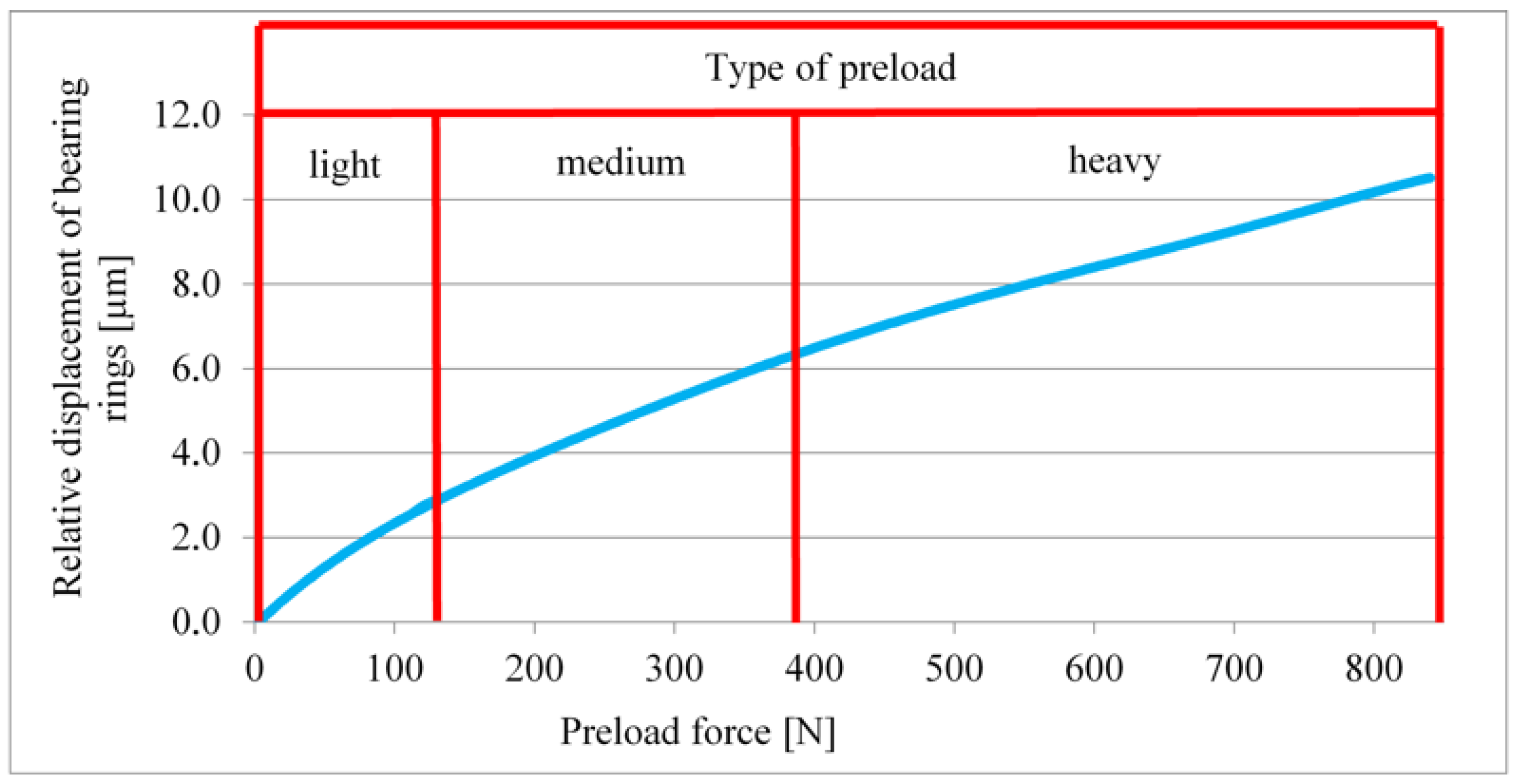 The preload was determined indirectly based on the bearing characteristics shown in