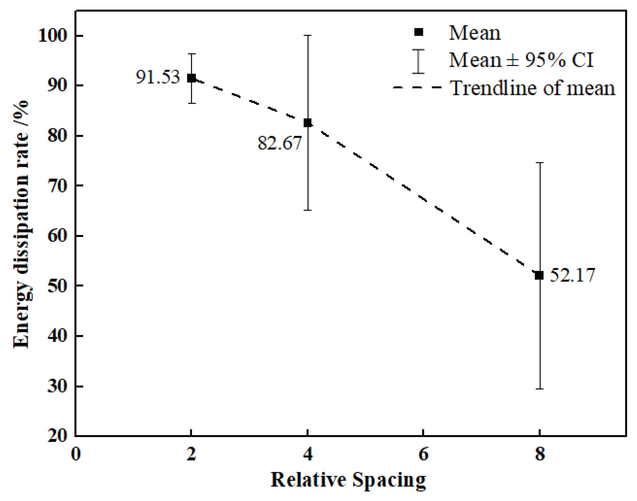 5.1. Influence of Spatial Structure on Energy Dissipation