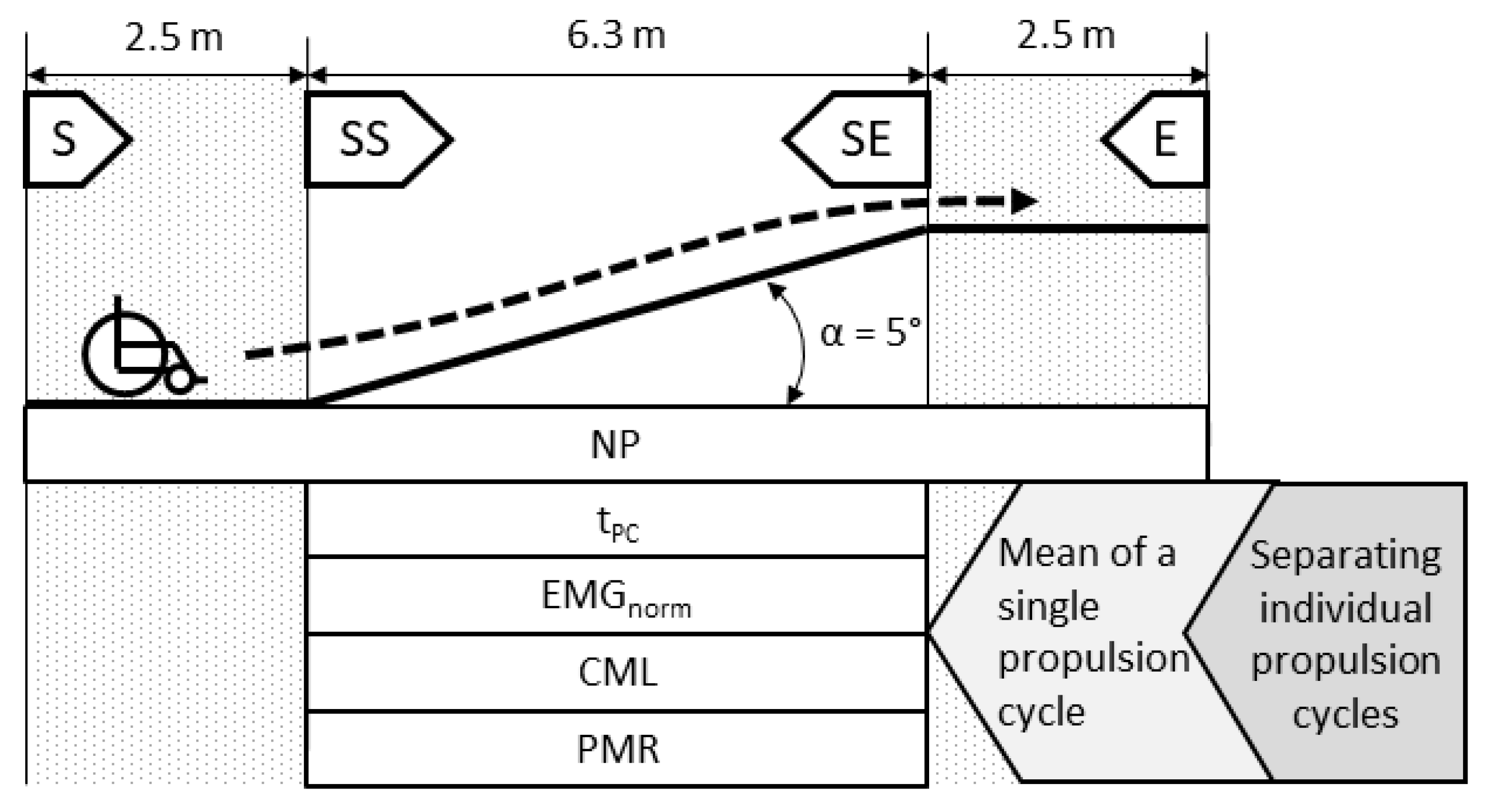 - Chow, J.W.; Millikan, T.A.; Carlton, L.G.; Chae, W.; Lim, Y.; Morse, M.I. Kinematic and Electromyographic Analysis of Wheelchair Propulsion on Ramps of Different Slopes for Young Men with Paraplegia. Arch. Phys. Med. Rehabil. 2009, 90, 271–278. [Google Scholar] [CrossRef] [PubMed]