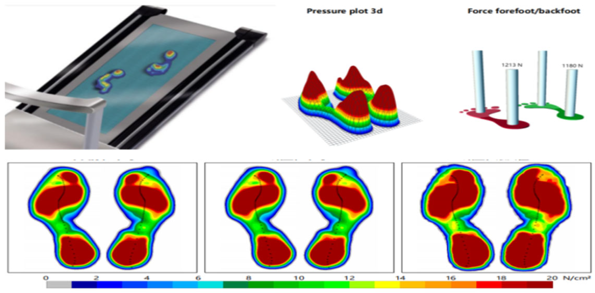 | Gait line length, GLL | mm | The length of the trajectory line of the center of foot pressure. |