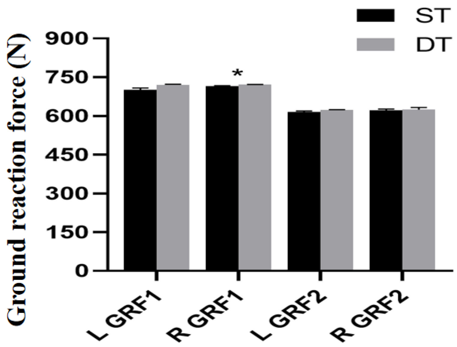| Ground reaction force, GRF | N | The first peak of the ground reaction force in the vertical direction is recorded as GRF1, and the peak of the ground reaction force is recorded as GRF2. |