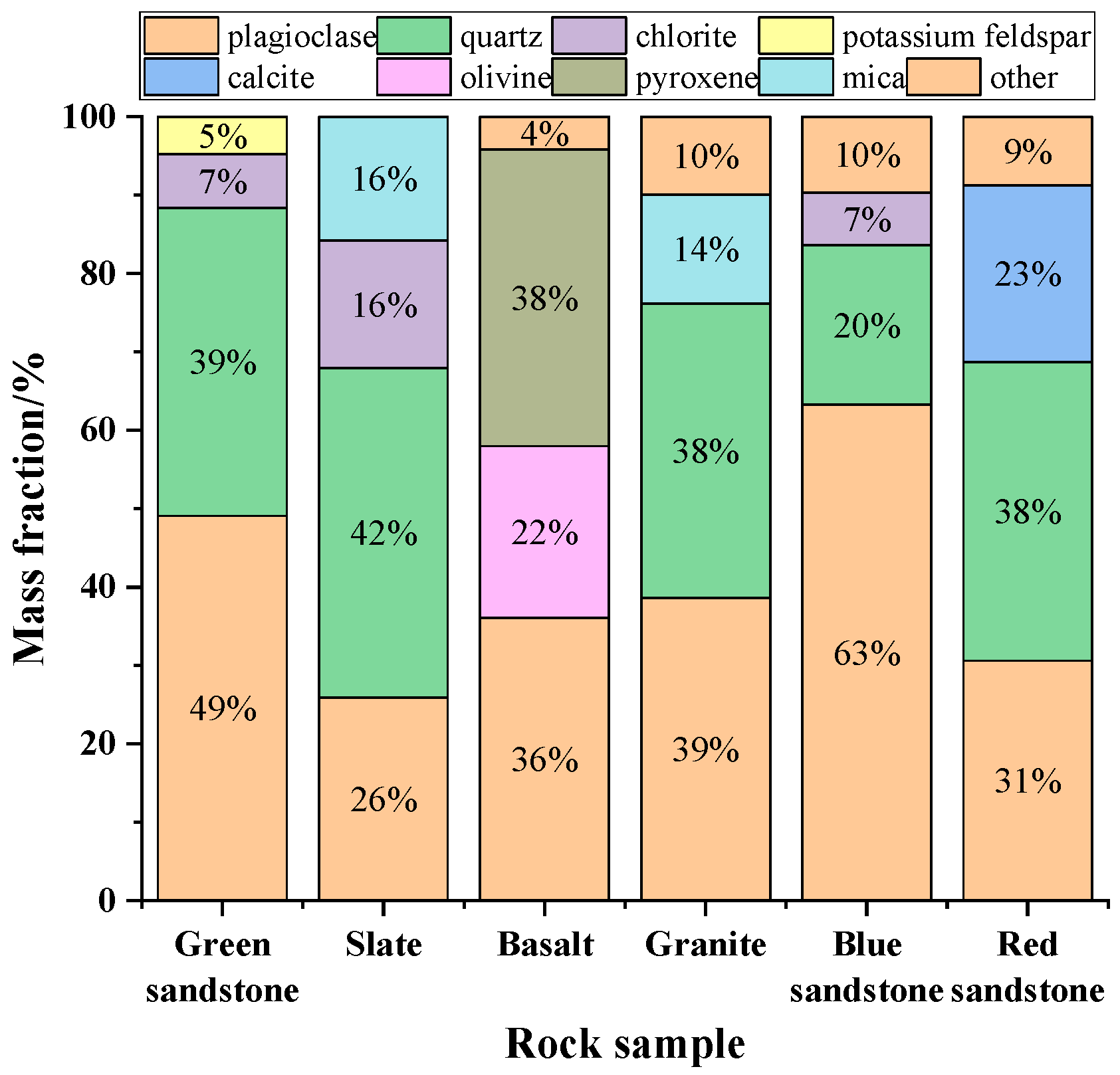 | Mineral particle group | Mineral matter group | Plagioclase | Quartz | Calcite | Other |