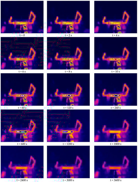 Thermal camera images of Case 16 (The color bar indicates the temperature, ranging from cold (blue) to hot (red).
