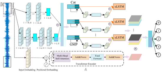 - The dual convolutional layer extracts high- and low-frequency features using large and small kernels, respectively. Large kernels enhance low-frequency learning and noise robustness, while small kernels deepen the network. Their combination enables multi-scale feature extraction for subsequent xLSTM processing. Feature fusion is performed via element-wise product.
