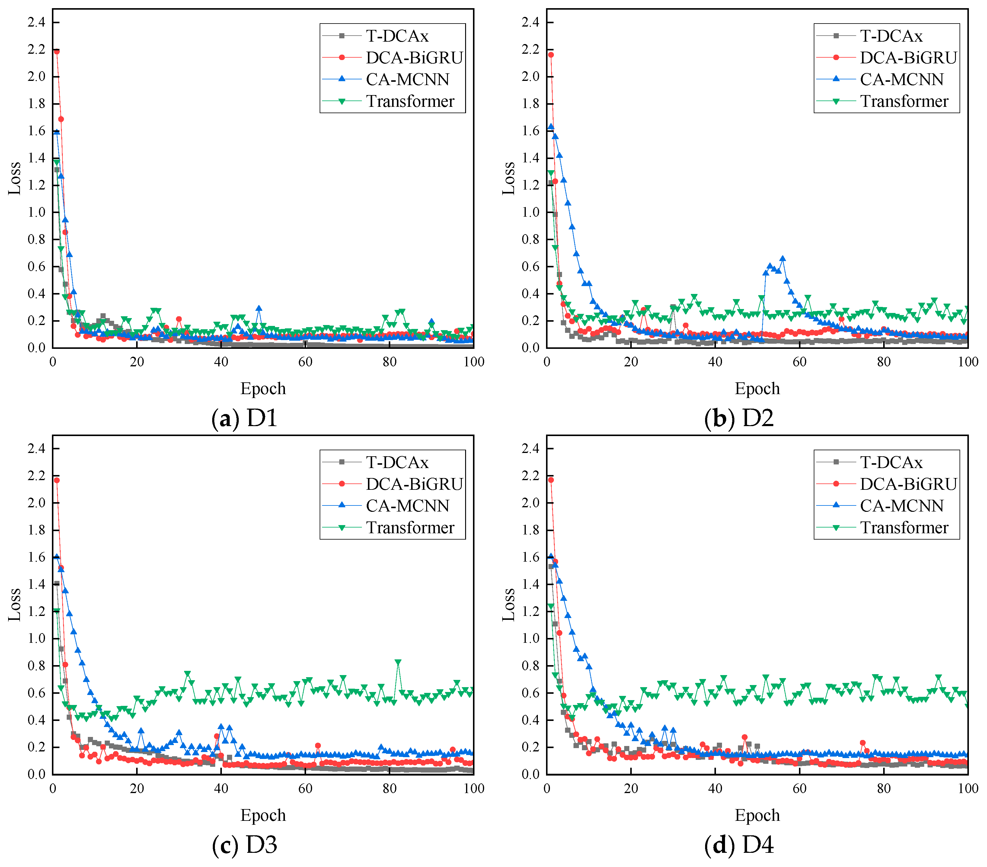 | T-DCAx | DCA-BiGRU | CA-MCNN | Transformer | |