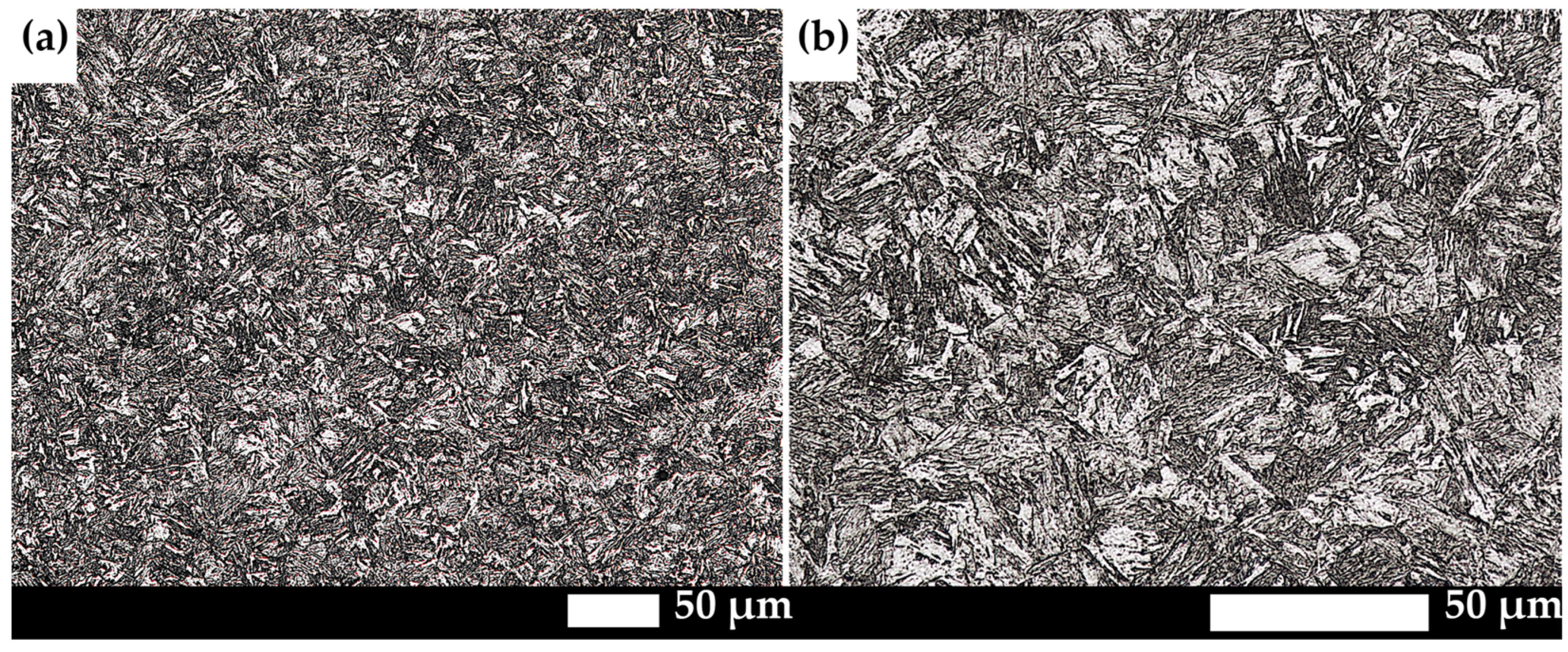 - Białobrzeska, B.; Konat, Ł.; Jasiński, R. The Influence of Austenite Grain Size on the Mechanical Properties of Low-Alloy Steel with Boron. Metals 2017, 7, 26. [Google Scholar] [CrossRef]