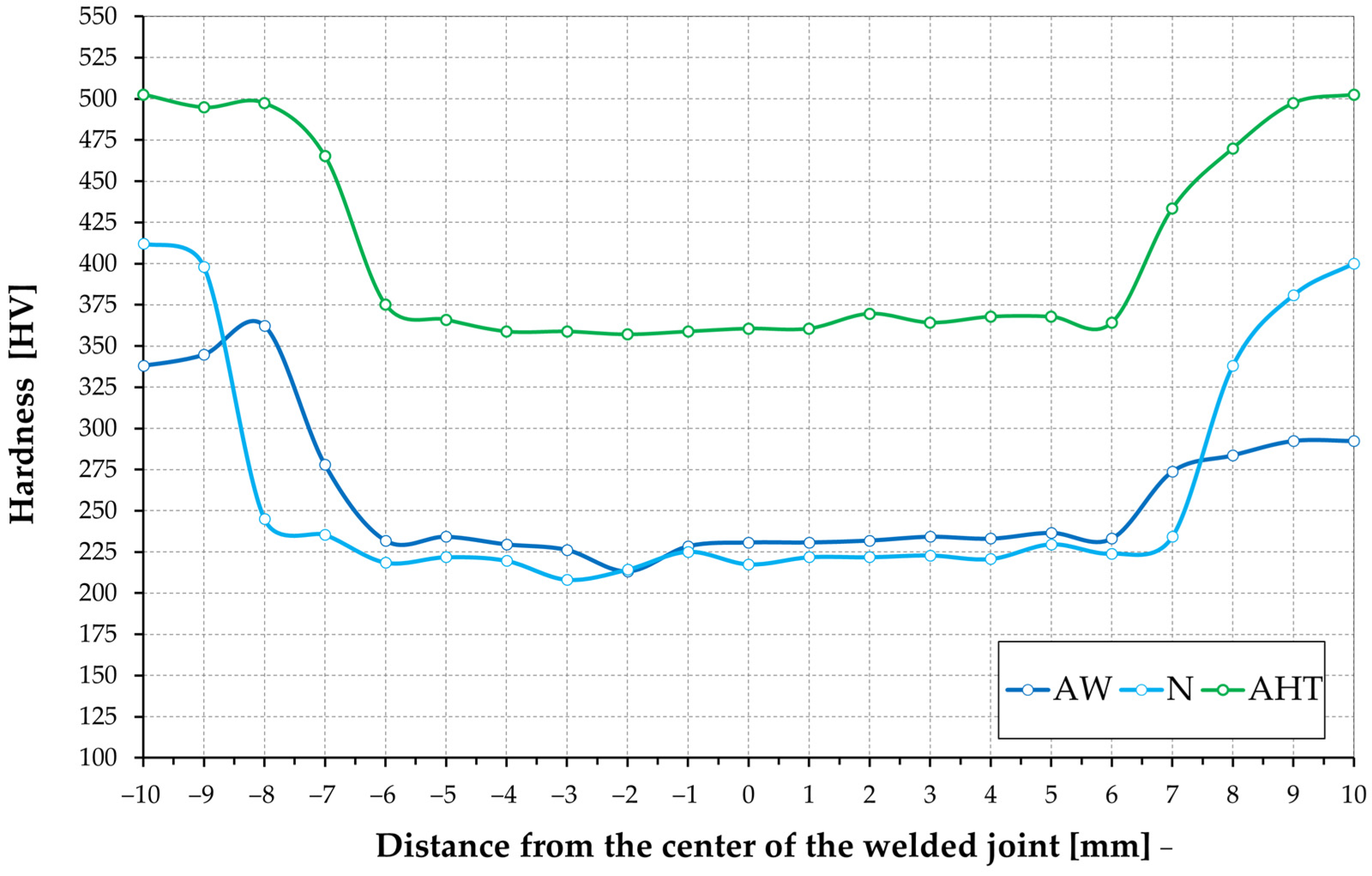 - Konat, Ł. Technological, Microstructural and Strength Aspects of Welding and Post-Weld Heat Treatment of Martensitic, Wear-Resistant Hardox 600 Steel. Materials 2021, 14, 4541. [Google Scholar] [CrossRef]