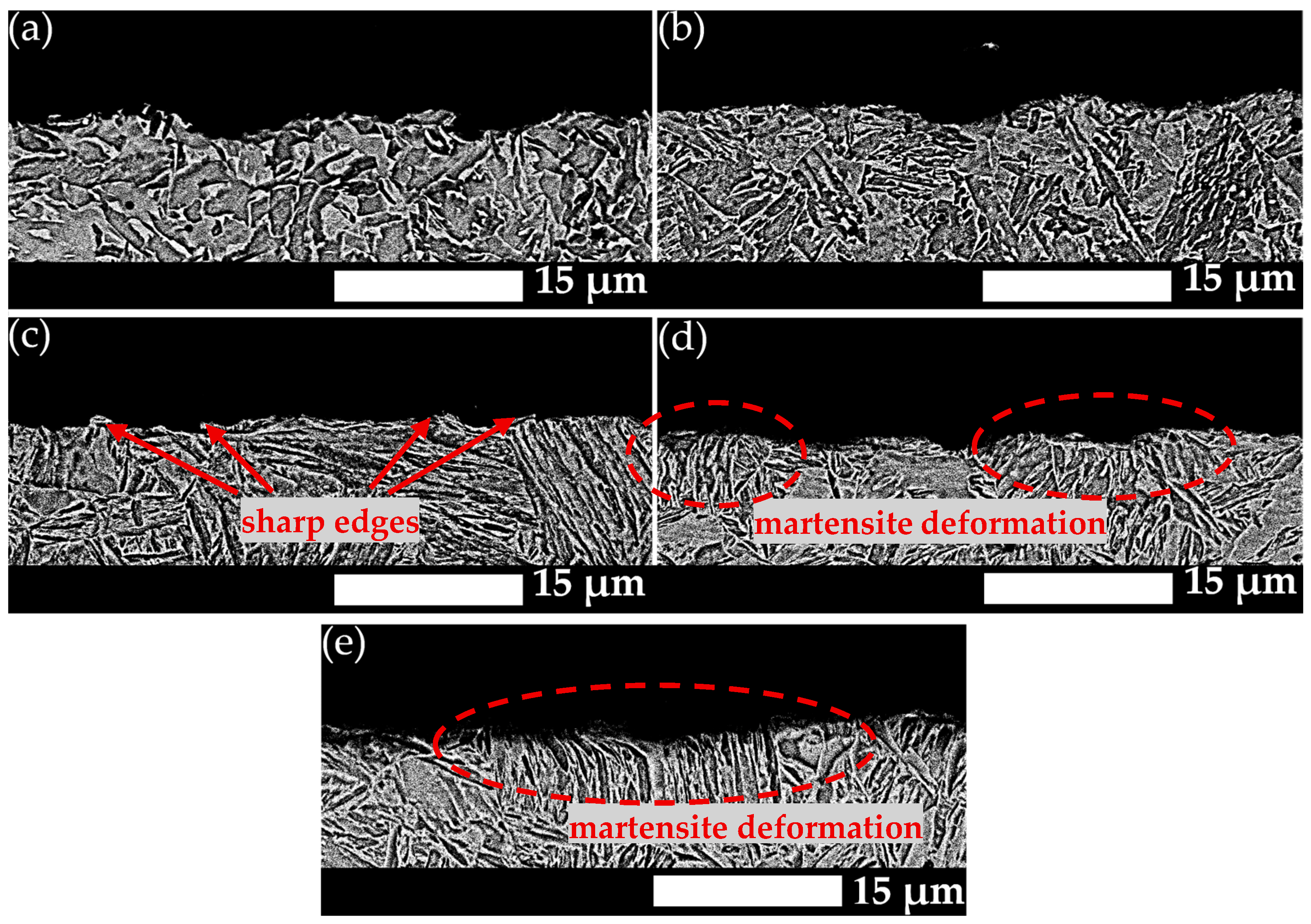 - Ratia, V.; Rojacz, H.; Terva, J.; Valtonen, K.; Badisch, E.; Kuokkala, V.-T. Effect of Multiple Impacts on the Deformation of Wear-Resistant Steels. Tribol. Lett. 2015, 57, 15. [Google Scholar] [CrossRef]