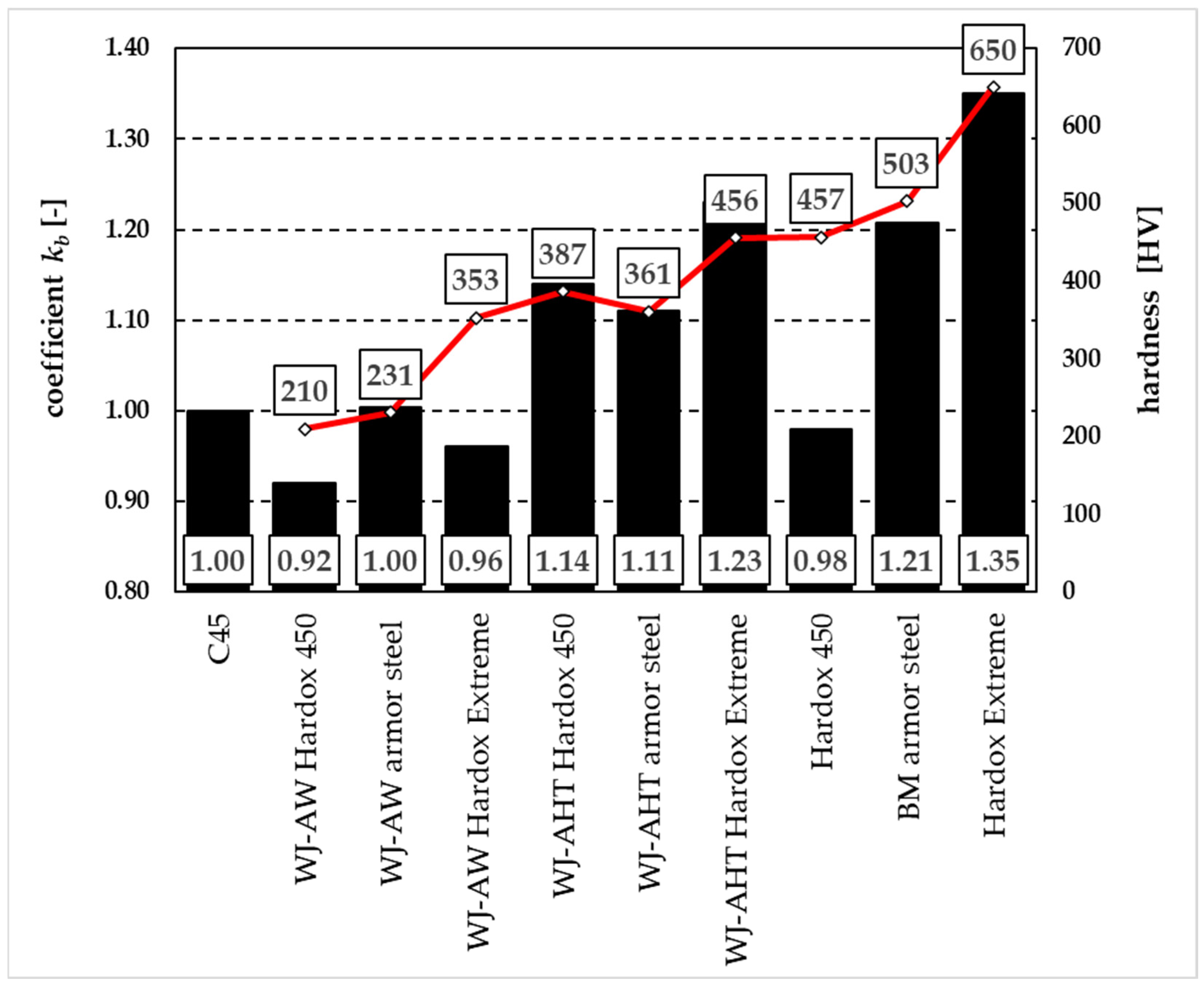 - Frydman, S.; Konat, Ł.; Pękalski, G. Structure and Hardness Changes in Welded Joints of Hardox Steels. Arch. Civ. Mech. Eng. 2008, 8, 15–27. [Google Scholar] [CrossRef]