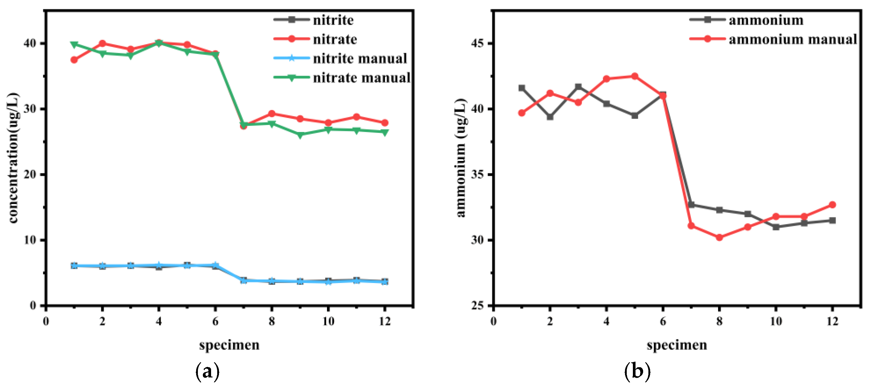 | NH4+ | 40.62 | 41.20 | 31.80 | 31.43 | 0.58 | 0.37 | −1.42 | 1.17 |