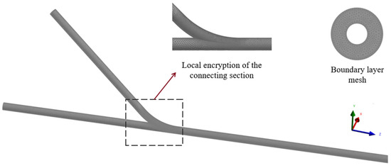 The main wellbore and the branched wellbore are meshed using hexahedral grid combinations, while the curved sections use unstructured grids with local refinement. The outer and inner walls are treated with expansion, and the mesh growth rate is set to 1.2 to ensure overall mesh accuracy.
