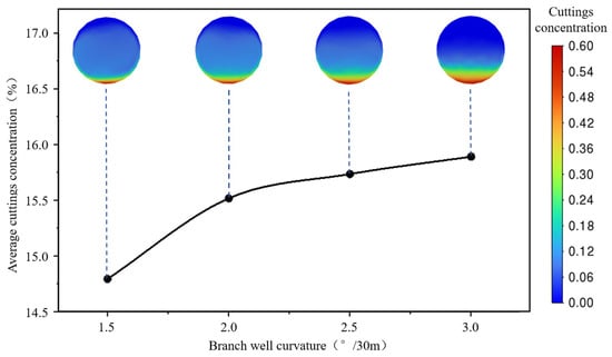 - Wellbore geometry strongly influences cuttings transport behavior. Increasing wellbore diameter and eccentricity intensifies cuttings deposition at the curved and junction sections, while a larger diameter helps alleviate accumulation near the lower end of the main wellbore. Greater curvature enhances local flow disturbance and centrifugal settling but reduces overall carrying efficiency, promoting particle retention in the near-bottom region.