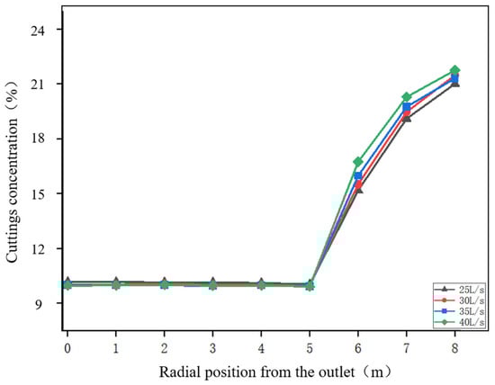 At present, research on cuttings transport is mainly based on empirical models, theoretical models, and computational fluid dynamics (CFD) models. In recent years, many scholars have carried out studies on cuttings transport [13,14]. Ghasemikafrudi and Hashemabadi [15] simulated liquid–solid two-phase flow in vertical wellbores and analyzed the effects of flow velocity, drillstring rotation speed, and eccentricity on pressure drop. Sun et al. [16] simulated the processes of cuttings transport and settling in wellbores and proposed a correlation formula for cuttings concentration based on dimensional analysis and infinite regression. Wang et al. [17] developed an unsteady solid–liquid coupling model and dynamically analyzed the influence of cuttings transport on pressure response. Zhu et al. [18] proposed a three-layer cuttings model and investigated the effect of drillstring rotation speed on cuttings transport efficiency. Sun et al. [19] simulated the transport of cuttings in wellbores using an Eulerian solid–liquid model with a standard turbulence closure and analyzed the impacts of drilling fluid velocity and other factors on cuttings migration and annular pressure drop.