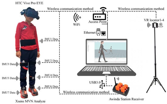 Motion-capture data were acquired using an Xsens MVN Awinda system, a markerless full-body motion-capture system, sourced from Jinfa Technology Limited Company, located in Beijing, China, at a sampling rate of 120 Hz [46]. The raw signals were processed with a 5 Hz low-pass filter and a Kalman filter, and step length, cadence, and gait cycle were extracted. For each indicator, the standard deviation and coefficient of variation (CV) were computed to characterize gait stability and consistency in children and adults during street crossing. By synchronously collecting and cross-validating questionnaire, eye-tracking, and motion-capture data, this study comprehensively documented behavioral responses in VR street-crossing scenarios and examined how visual guidance elements influence street-crossing behavior.
