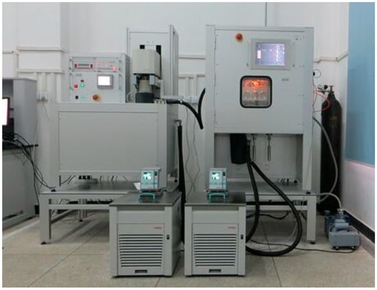 To study accumulation-type water vapor transport (AT-WVT) in asphalt mixtures, a Gravimetric Sorption Analyzer (GSA, Rubolab Technologies, Germering, Germany) was used. A schematic diagram of the equipment is shown in Figure 5. The GSA was equipped with a high-precision magnetic suspension balance, which enables accurate weighing of the mass of test specimens, with the balance accuracy reaching 0.1 mg; the test temperature was set to 20 °C.