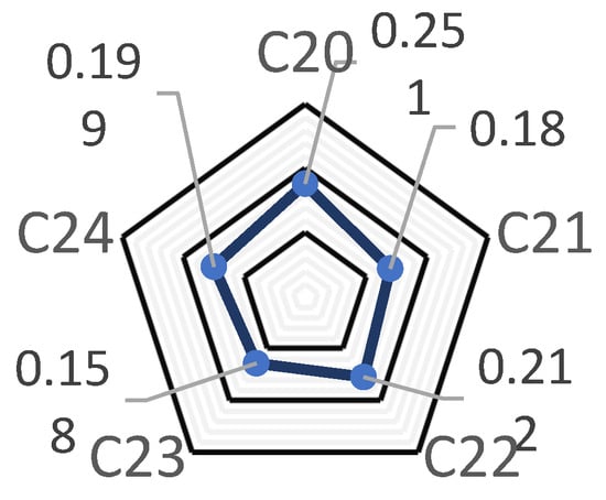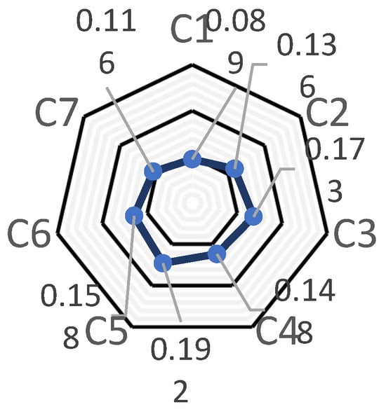 The information entropy weight is shown in Figure 3, Figure 4, Figure 5, Figure 6 and Figure 7 below.