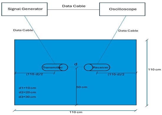 Schematic setup for calibration of the physics-guided regression model. The configuration enables precise control over acoustic propagation paths for multiple transmitter–receiver distances. This controlled setup supports the development and validation of data-driven models that incorporate physical attenuation principles, forming the foundation for robust machine learning feature engineering.