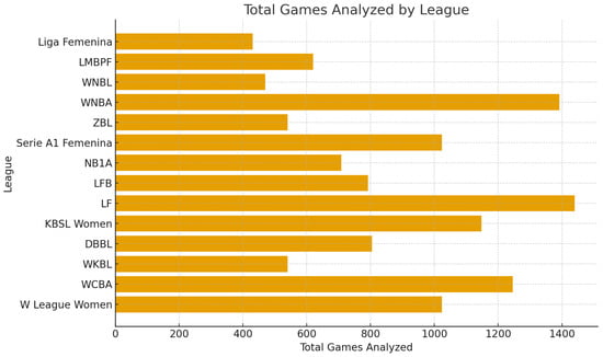 Data were obtained from 12,178 games played across 14 women’s professional basketball leagues (Table 1 and Figure 1). The dataset included three regular seasons (from the 2021–2022 to 2023–2024 season). Since the data were open access, obtaining participant informed consent was not required.