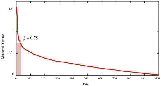 The distances are then arranged from highest to lowest. Our findings indicate that the distance decreases exponentially until it reaches approximately 0.75, after which the trend becomes more linear, as illustrated in Figure 6. This trend provides guidance for selecting the appropriate number of input bits for the TS detector. Specifically, we recommend considering any input bits that produce a distance of 0.75 or higher as unreliable and subjecting them to further refinement by the TS detector. This strategy focuses on correcting only the most unreliable bits, effectively balancing performance improvements with computational efficiency. For the TS detector in this study, the number of input bits should be fewer than 50 bits, as illustrated in Figure 6. Therefore, we will set the specific value ξ equal to 0.75 throughout our study.