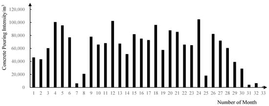 Monthly concrete pouring intensity chart.