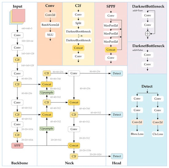 Among them, the YOLO series is a prominent mainstream solution. From the classic architectures of YOLOv1-v3 [21,22,23] to the incorporation of CSPNet, data augmentation, and enhanced PAN in YOLOv4-v5 [24,25], and further innovations in YOLOv6-v11 [26,27,28,29,30,31], such as BiC/SimCSPSPPF, anchor-free detection, C2f/C3k2 modules, and spatial attention mechanisms. These advancements consistently strive to strike a balance between accuracy and speed. For instance, YOLOv8s achieves a 44.9% mAP on the COCO dataset with a single-frame inference time of merely 1.2 milliseconds on an A100 GPU.