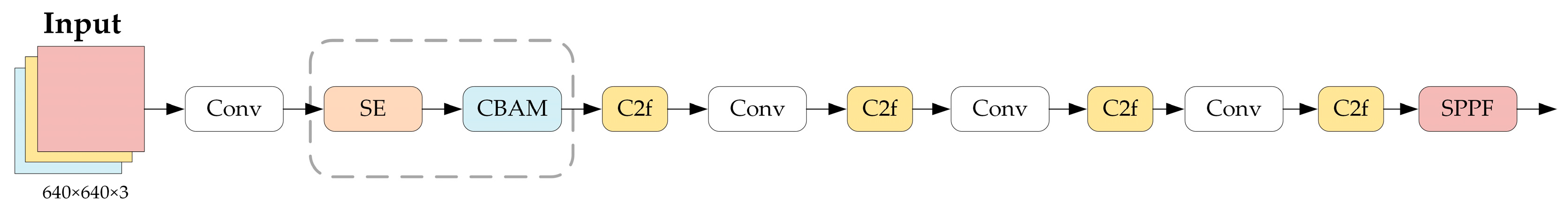 This research built an object detection model called YOLO-SE-CBAM. The structure is shown in