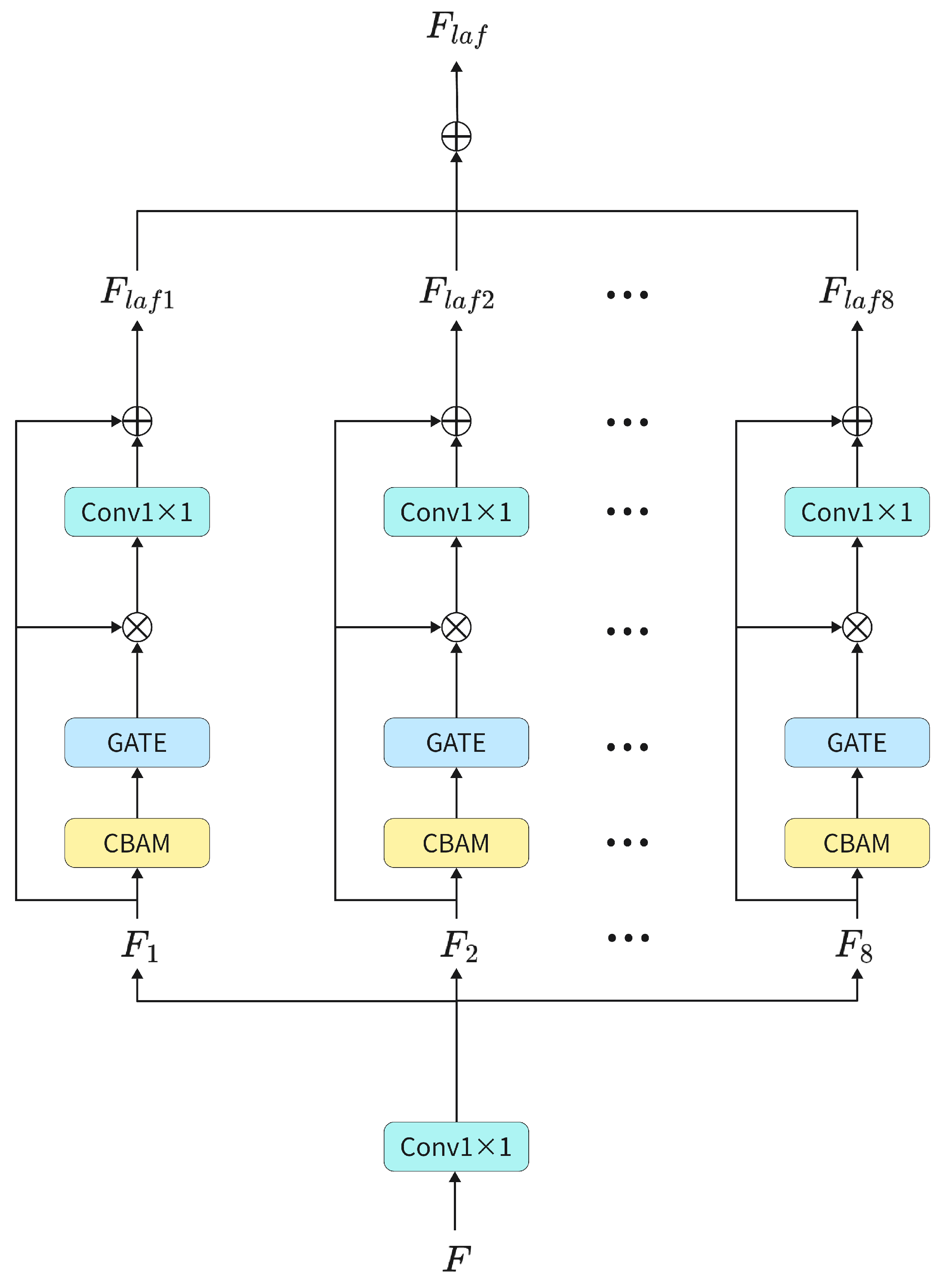 Table 3, incorporating the MFMA and LAF modules improved the model’s classification accuracy by 4.41% and 5.20%, respectively. Specifically, the MFMA module establishes connections between feature layers through multi-scale global pooling and cross-layer feature fusion, thereby enhancing inter-layer contextual modeling capability and improving the perception of the overall image structure. The LAF module performs fine-grained local modeling of feature maps via channel grouping and local attention mechanisms, which strengthens the model’s ability to discriminate key regions and to perceive lesion boundaries.