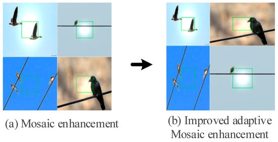 For the bird recognition problem, given that birds are typically small in size and have low distribution coefficients in images, this paper improves the traditional Mosaic data augmentation method and proposes an adaptive scale Mosaic enhancement approach to improve training performance.
