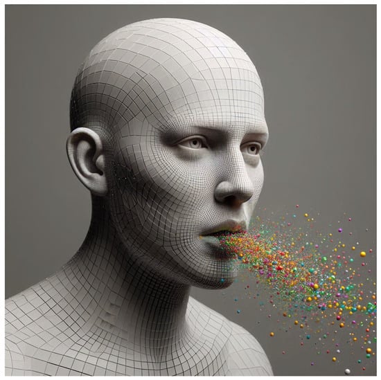 Visualisation of a coughing person and the resultant spread of particles in multiple directions. The image was generated through Microsoft Bing Image Creator for illustration purposes [101].