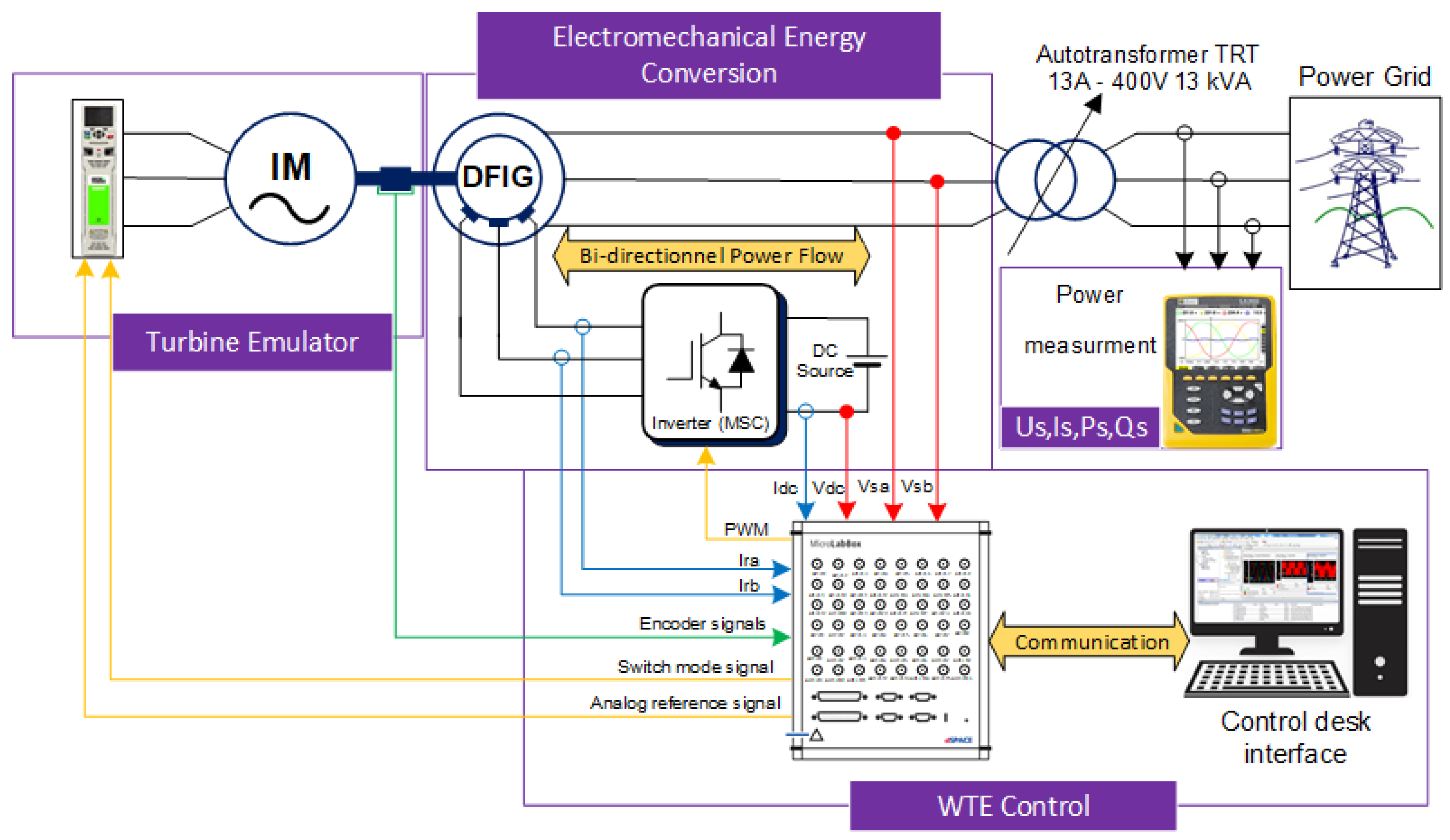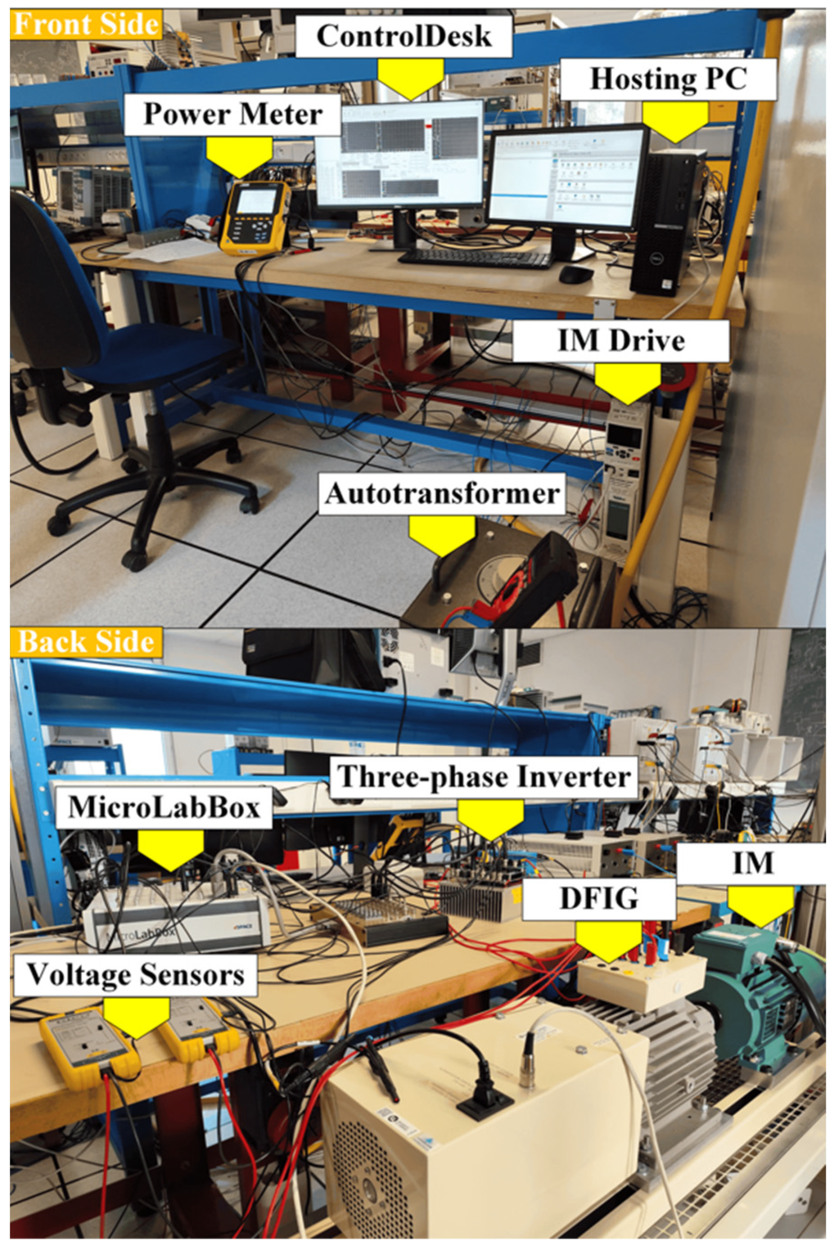 - A complete and fully documented hardware platform for a wind turbine emulator using an IM–DFIG configuration, offering a cost-effective and low-maintenance alternative to classical DCM-based setups.